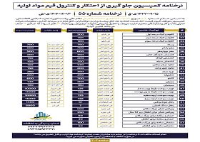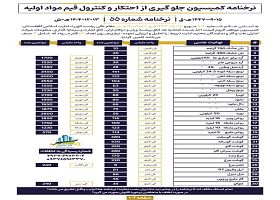 نرخنامه شماره ۵۵ کمیسیون جلوگیری از احتکار و کنترول قیم مواد اولیه!