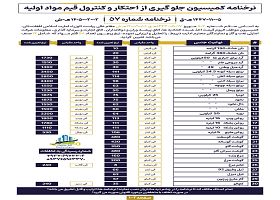 نرخنامه شماره ۵۷ کمیسیون جلوگیری از احتکار و کنترول قیم مواد اولیه!