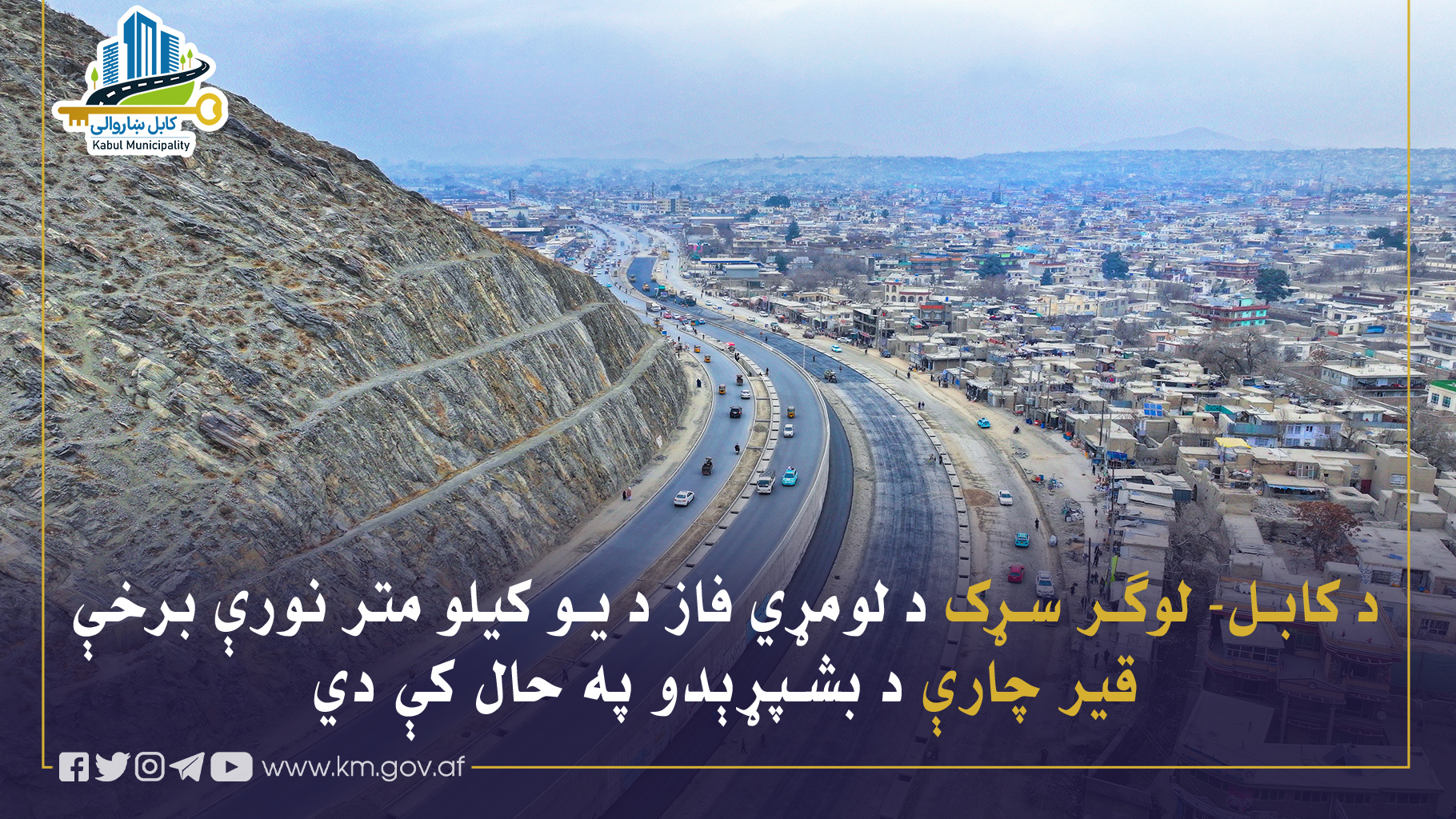 په کابل ښار کې د ترانسپورتي زیربناوو د پراختیا په موخه د کابل- لوګر سړک د لومړي فاز د یو کیلو متر نورې برخې قیر چارې د بشپړېدو په حال کې دي.