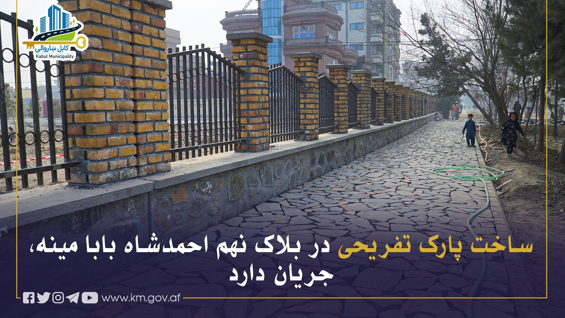 کار ساخت یک پارک تفریحی در بلاک نهم احمدشاه بابا مینه در مربوطات ناحیه دوازدهم که چندی قبل از سوی شاروالی کابل بههمکاری دفتر پروژوی سازمان ملل متحد آغاز شده بود با سرعت جریان دارد.
