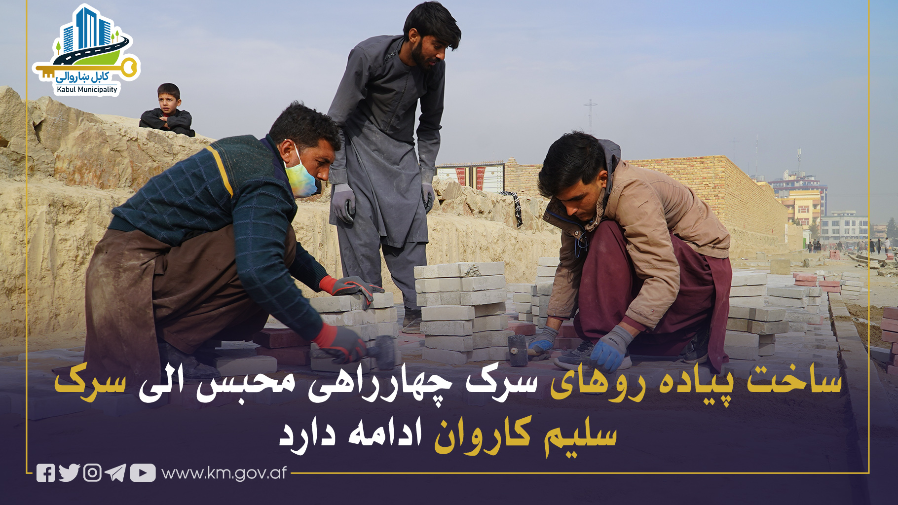 ساخت پیادهروهای سرک چهارراهی محبس الی سرک سلیم کاروان در مربوطات ناحیۀ دوازدهم با رعایت کامل معیارهای فنی و تخنیکی ادامه دارد که برای ایجاد سهولت عابرین پیاده از اهمیت خاص برخوردار است.