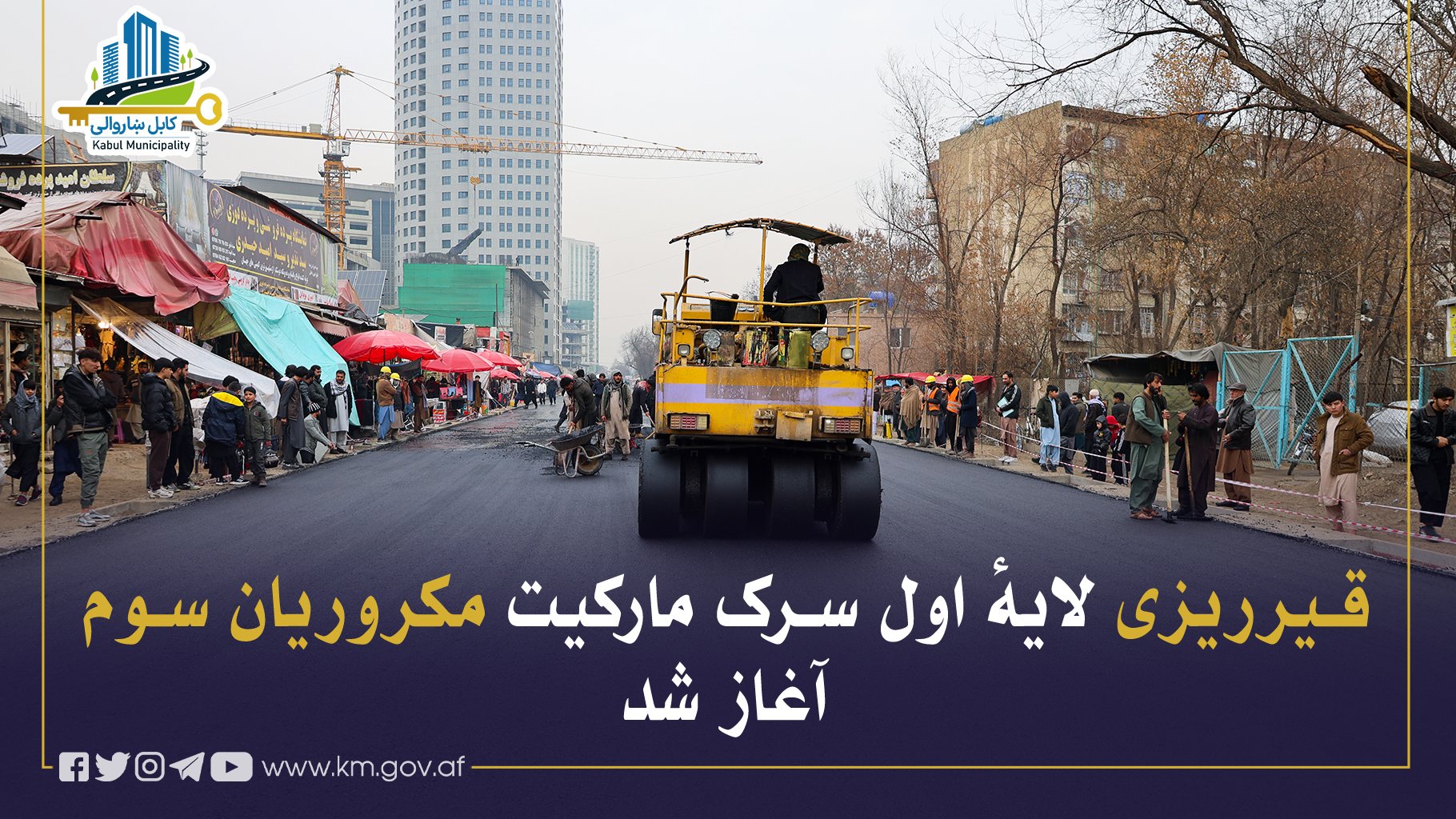 کار قیرریزی لایهٔ اول سرک مارکیت مکروریان سوم در مربوطات ناحیهٔ نهم بهطول ۶۲۱ متر آغاز شد و قرار است بهزودی تکمیل و به روی ترافیک باز شود.