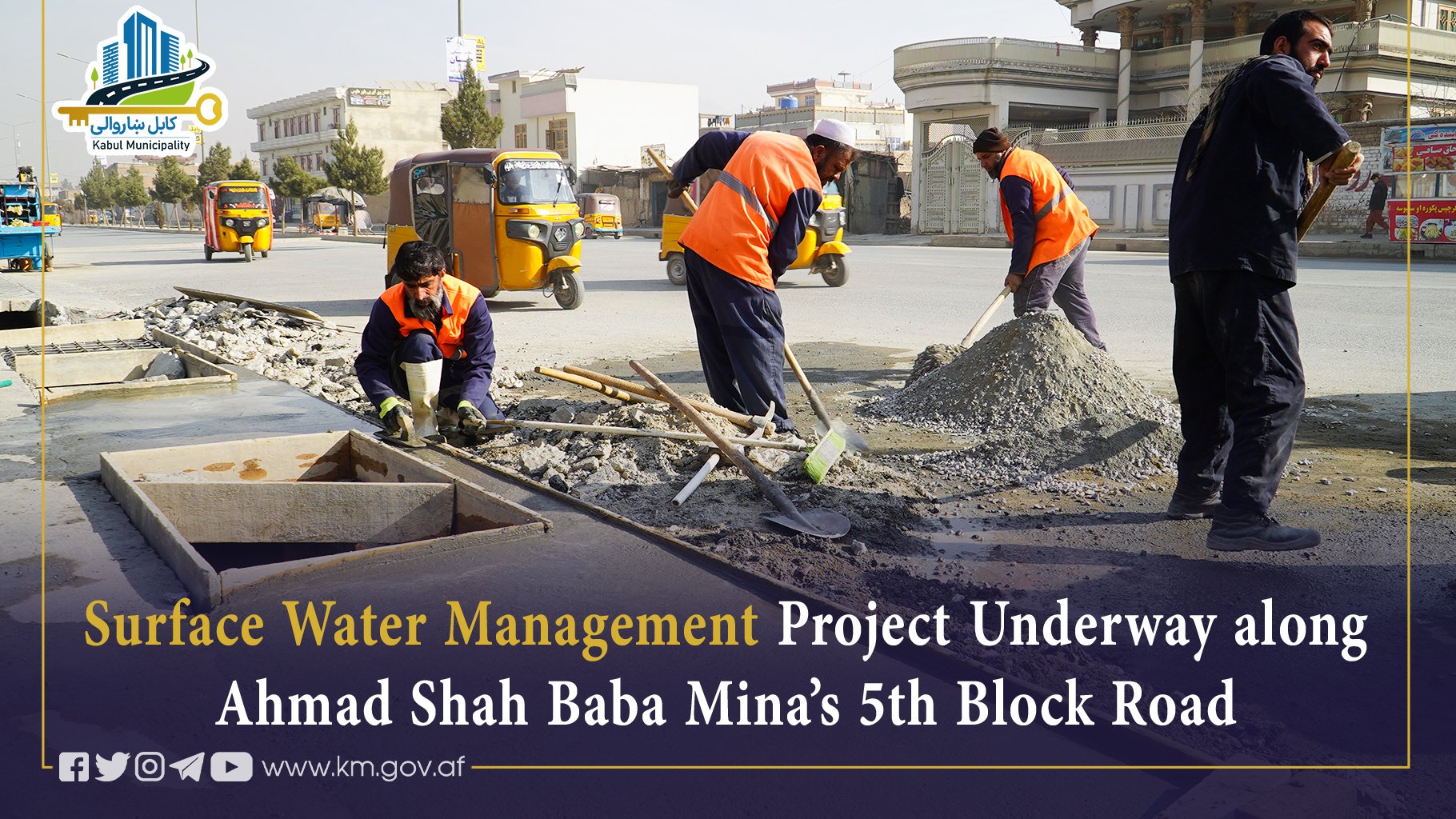 Kabul Municipality’s Directorate of Works Maintenance and Monitoring has started a surface water management project along the road in the 5th Block of Ahmad Shah Baba Township in District 12, with the goal of improving water control and addressing technical challenges.