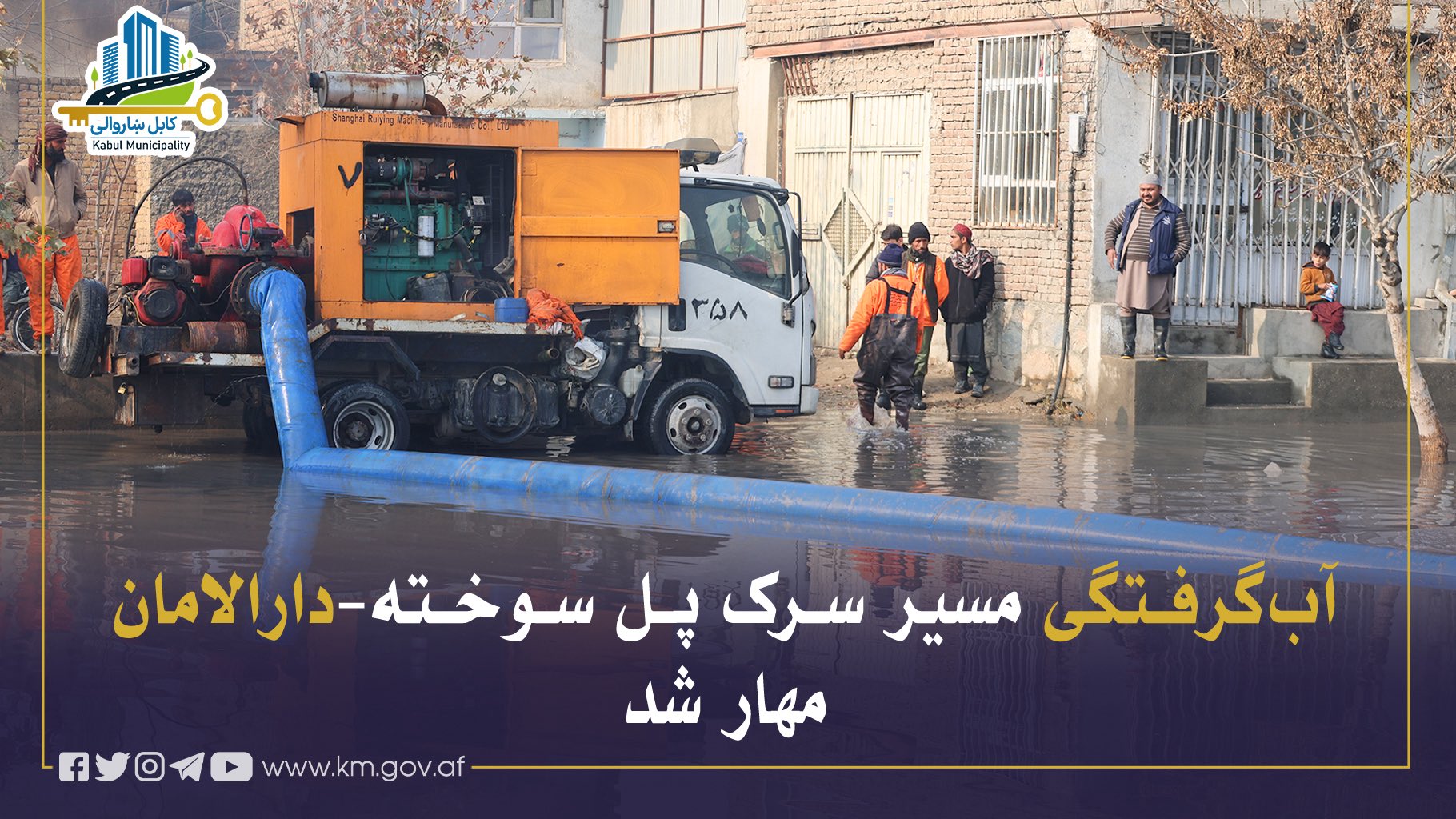 بهمنظور رفع آبگرفتگی بهوجودآمده ناشی از بارندگیهای اخیر در مسیر سرک پلسوخته–دارالامان، در مربوطات ناحیه ششم، پرسونل ریاست تنظیف شاروالی کابل اقدامات عاجل را رویدست گرفتند.