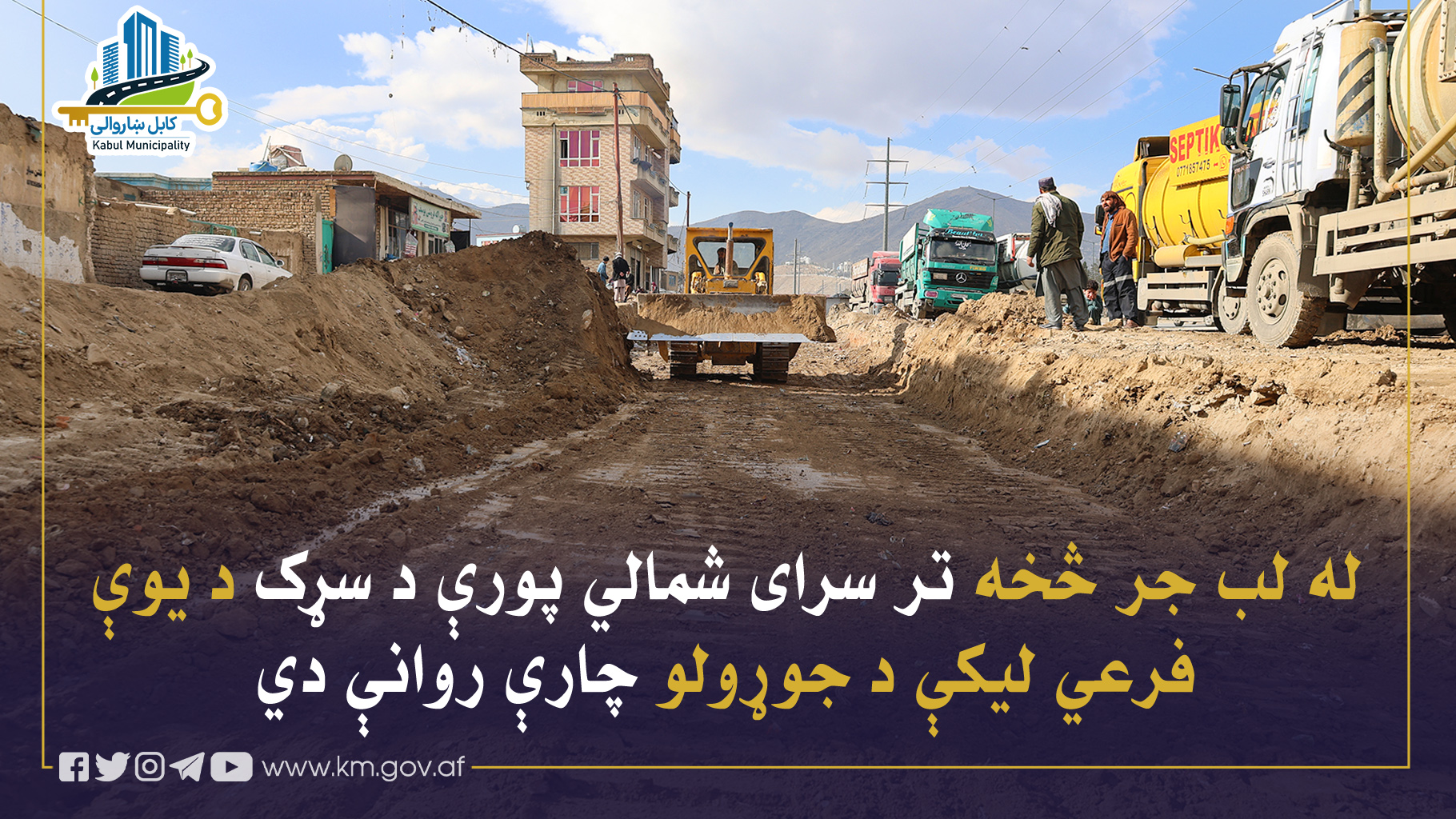 د کابل ښاروالۍ د کار ساتنې او مراقبت ریاست له لوري له لب جر څخه تر سرای شمالي پورې( د سلطان محمود غزنوي سړک پر دوام) د سړک د یوې فرعي لیکې د جوړولو چارې روانې دي.