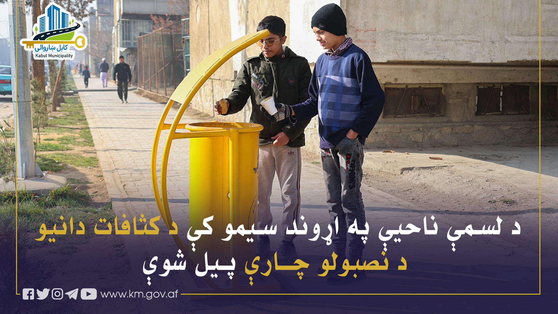د ښار د پاک ساتلو او ښاري ښکلا رامنځته کېدو په موخه د کابل ښاروالۍ له لوري د لسمې ناحیې په اړوند سیمو کې د پلیو لارو او عمومي سړکونو لپاره د ځانګړو کثافات دانیو د نصبولو چارې پیل شوې.