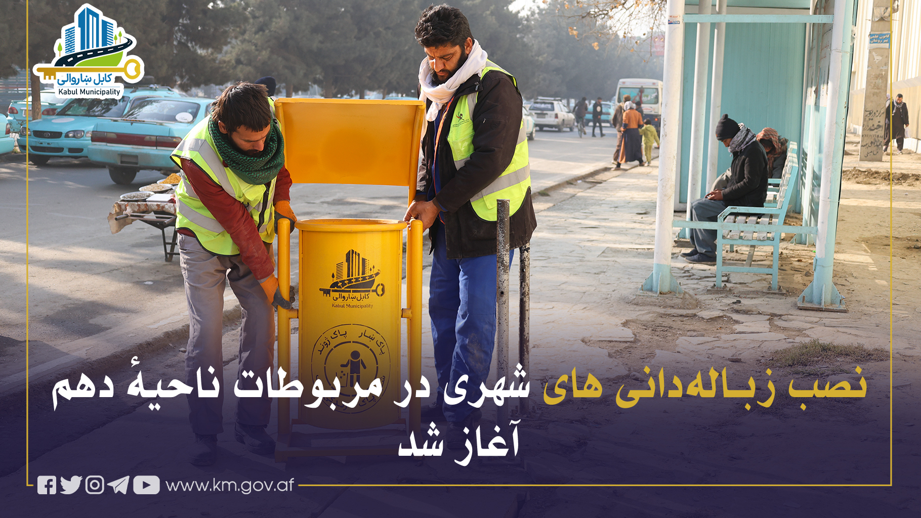 بهمنظور تأمین پاکیزگی، حفظالصحهٔ محیطی و زیباسازی شهر، برنامهٔ نصب زبالهدانی های شهری ویژهٔ پیادهروها و مسیرهای عمومی در مربوطات ناحیهٔ دهم از سوی شاروالی کابل آغاز گردیده است.