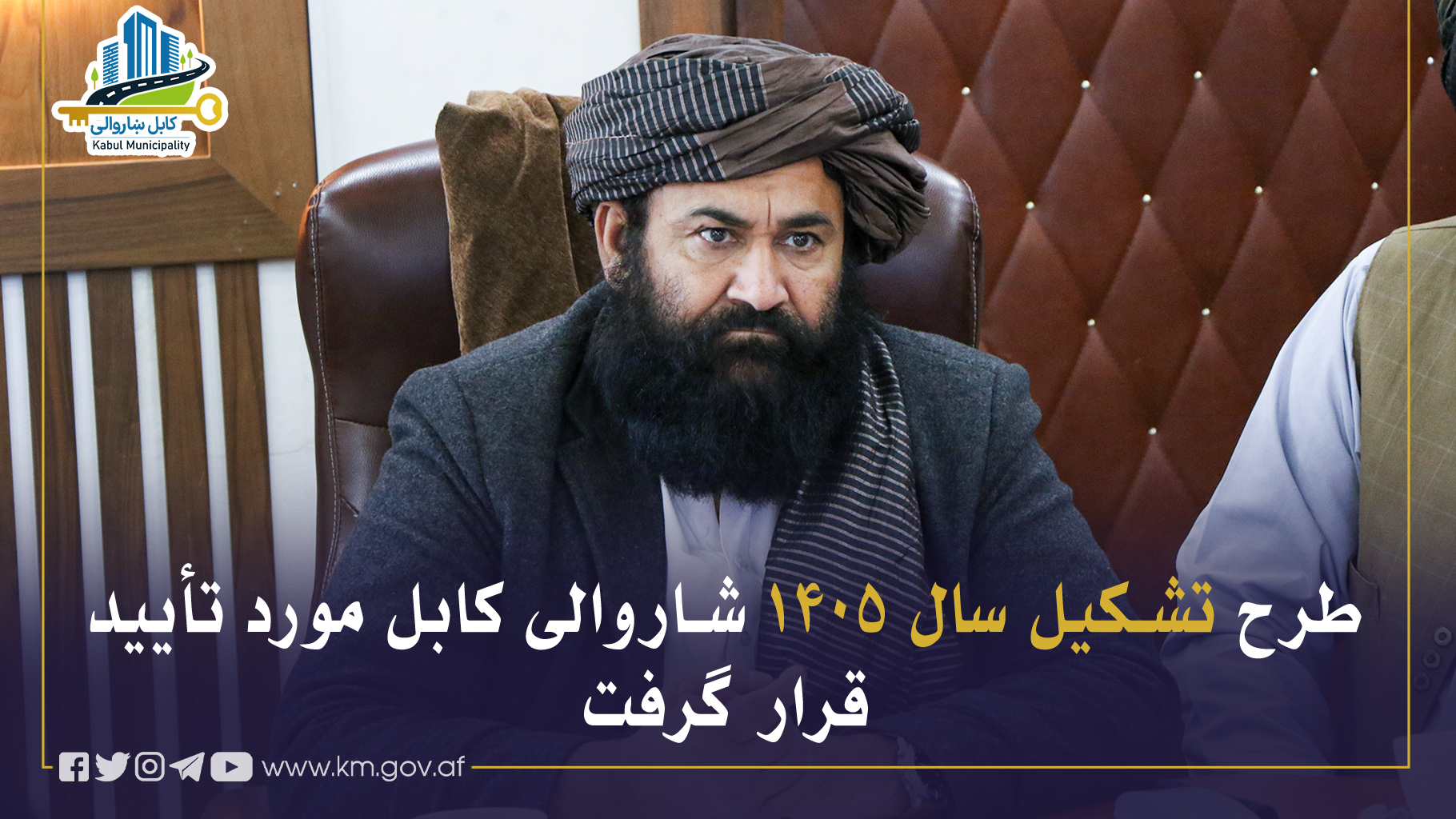 طرح تشکیل سال ۱۴۰۵ شاروالی کابل، پس از بررسیهای همهجانبهٔ کمیتهٔ موظف، از سوی مولوی عبدالرشید شاروال کابل مورد تأیید قرار گرفت و پس از منظوری نهایی، تطبیق خواهد شد.