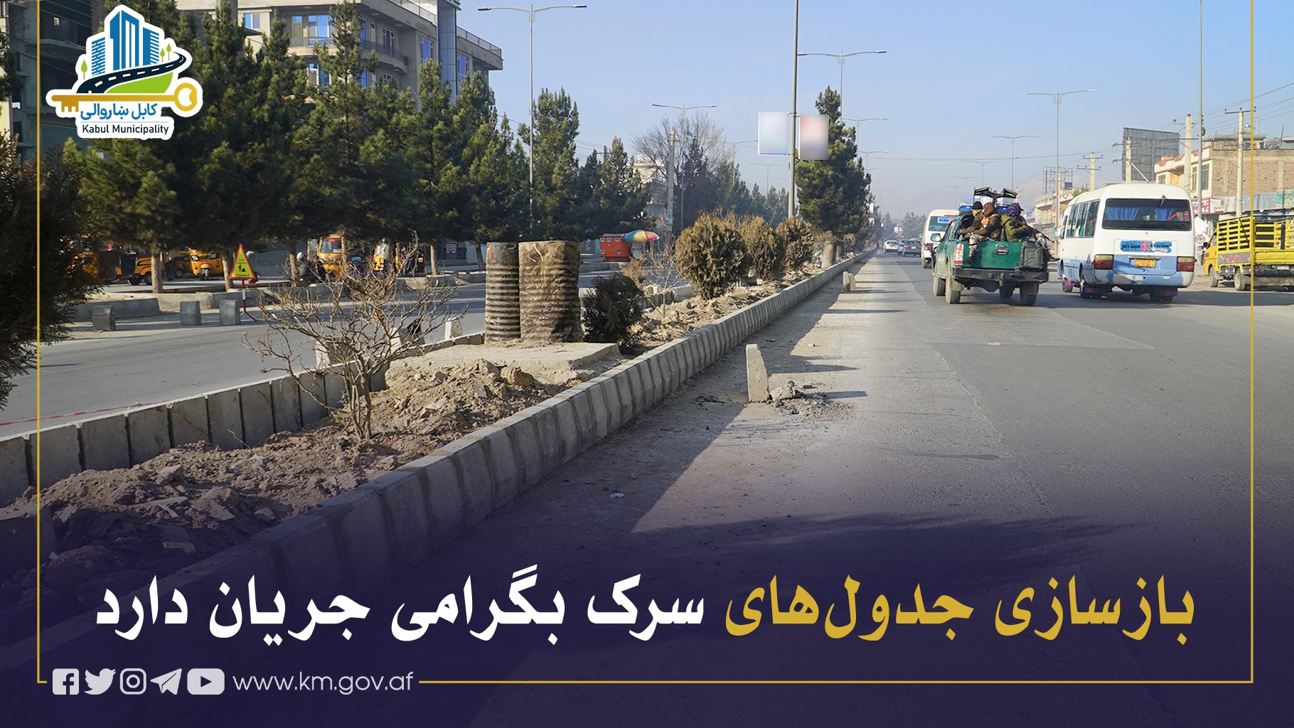 کار بازسازی جدولهای سرک بگرامی تا چهارراهی بتخاک (چهارراهی ملالی) از سوی ریاست کار، حفظ و مراقبت شاروالی کابل جریان دارد.