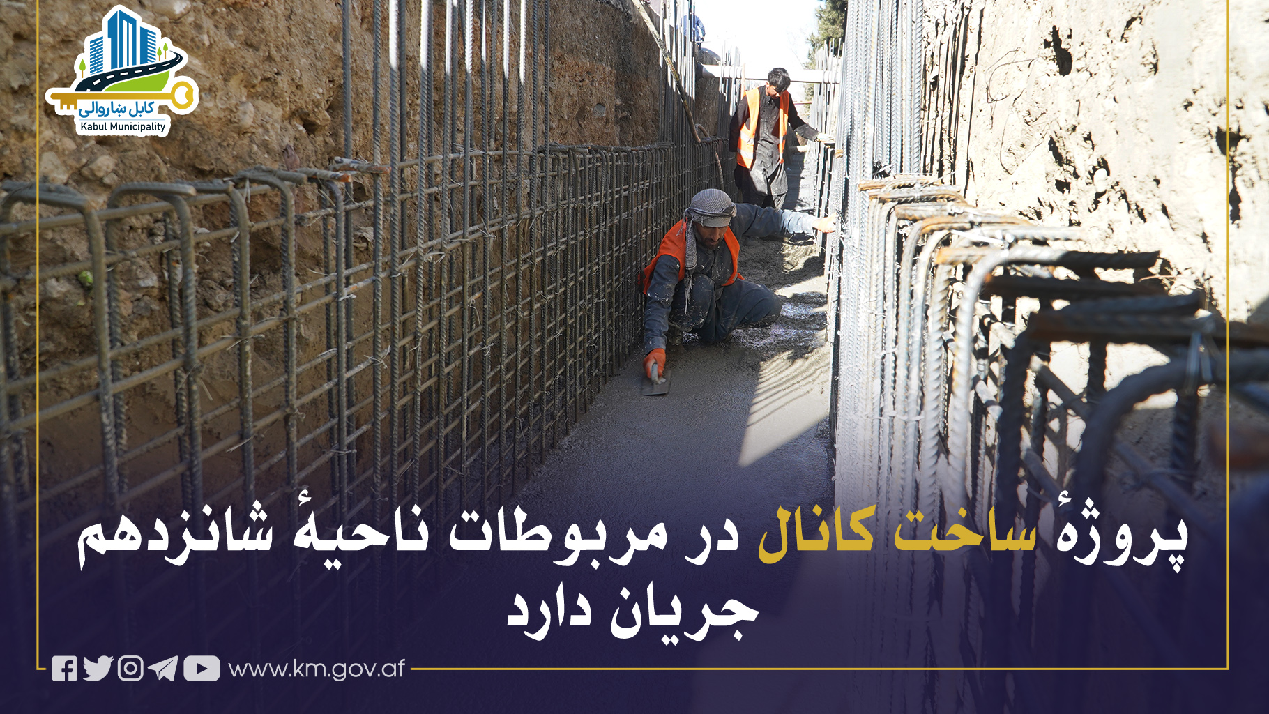 بهمنظور مدیریت آبهای سطحی و جلوگیری از آبخیزی، پروژهٔ ساخت کانال از مقابل ریاست ملیبس الی دریای کابل، واقع در مربوطات ناحیهٔ شانزدهم، از سوی شاروالی کابل با سرعت در حال جریان میباشد.