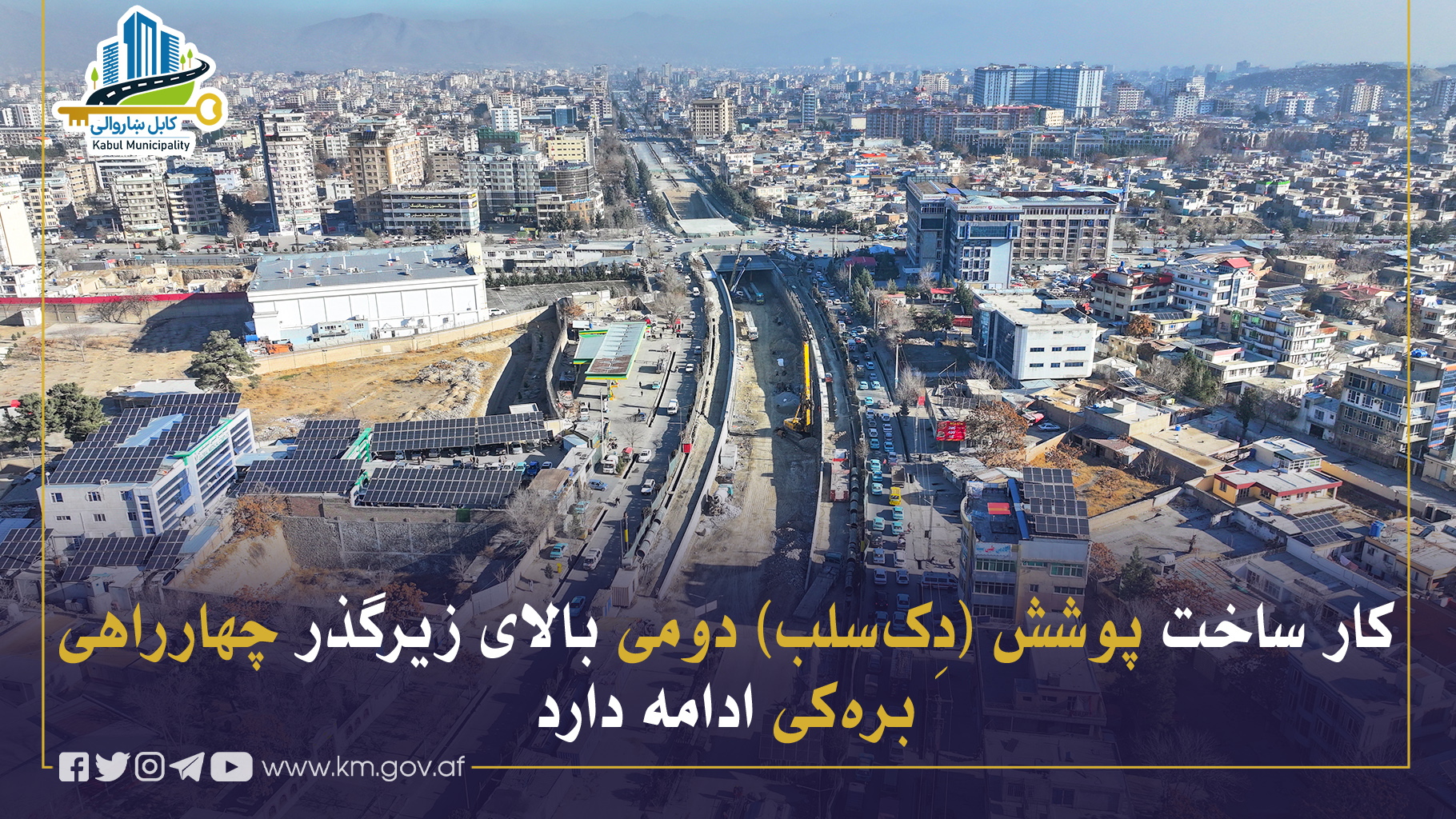 قابل یادآوری است که پروژهٔ ساخت راه زیرزمینی موتررو این چهارراهی از سمت لیسهٔ نادریه تا چهارراهی ترافیک، بهطول ۴۷۰ متر، عرض ۲۰ متر و عمق ۵.۵ متر، در دهم جوزای سال روان توسط ریاست کار، حفظ و مراقبت شاروالی کابل آغاز گردیده و تاکنون به ۶۵ درصد پیشرفت کاری رسیده است.