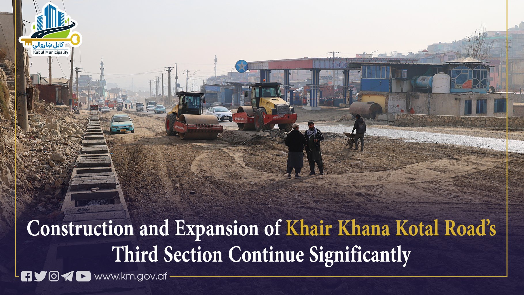 The construction and expansion of the third section of Khair Khana Kotal Road, initiated this year by Kabul Municipality’s Directorate of Work Maintenance and Monitoring, is progressing systematically.