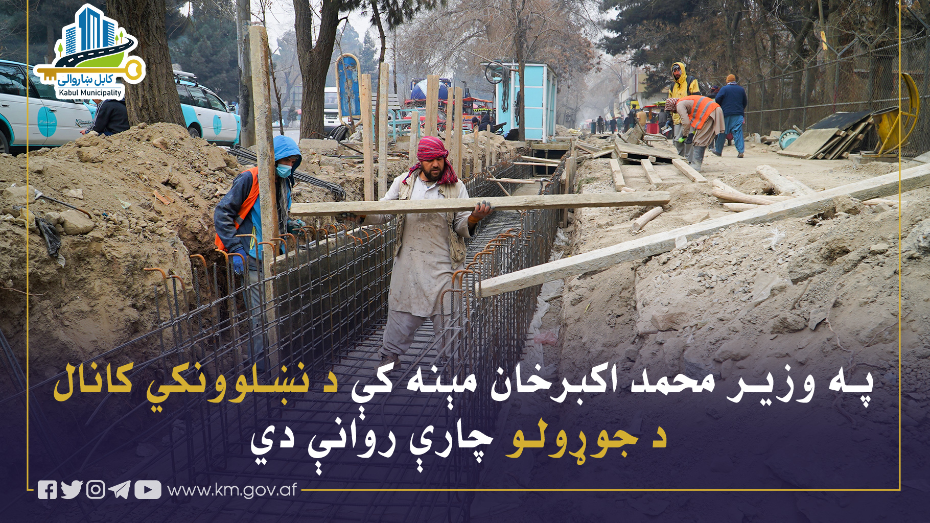 د وزیر محمد اکبرخان مېنې له پنځلسم سړک څخه تر اجمیر کانال پورې د ۲۷۰۰ مترو په اوږدوالي او له ۸۰ سانتي مترو څخه تر ۱.۴ مترو په سور سره د کانال جوړولو چارې روانې دي او هڅه کېږي چې، تر راتلونکو ۳ میاشتو پورې بشپړې شي.