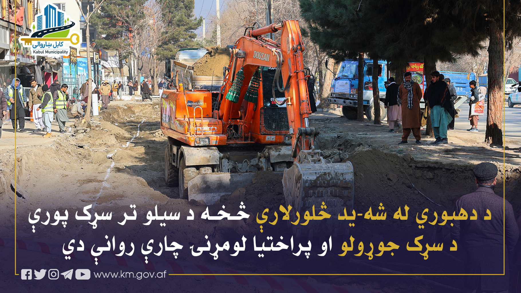د درېیمې ناحیې اړوند د دهبوري له شه – ید څلورلارې څخه د پوهنتون او سیلو تر سړک پورې د سړک جوړولو او پراختیا لومړنۍ چارې چې، کیندنې، خاورې لېږدول او د خنډونو پاکول په بر کې نیسي روانې دي.