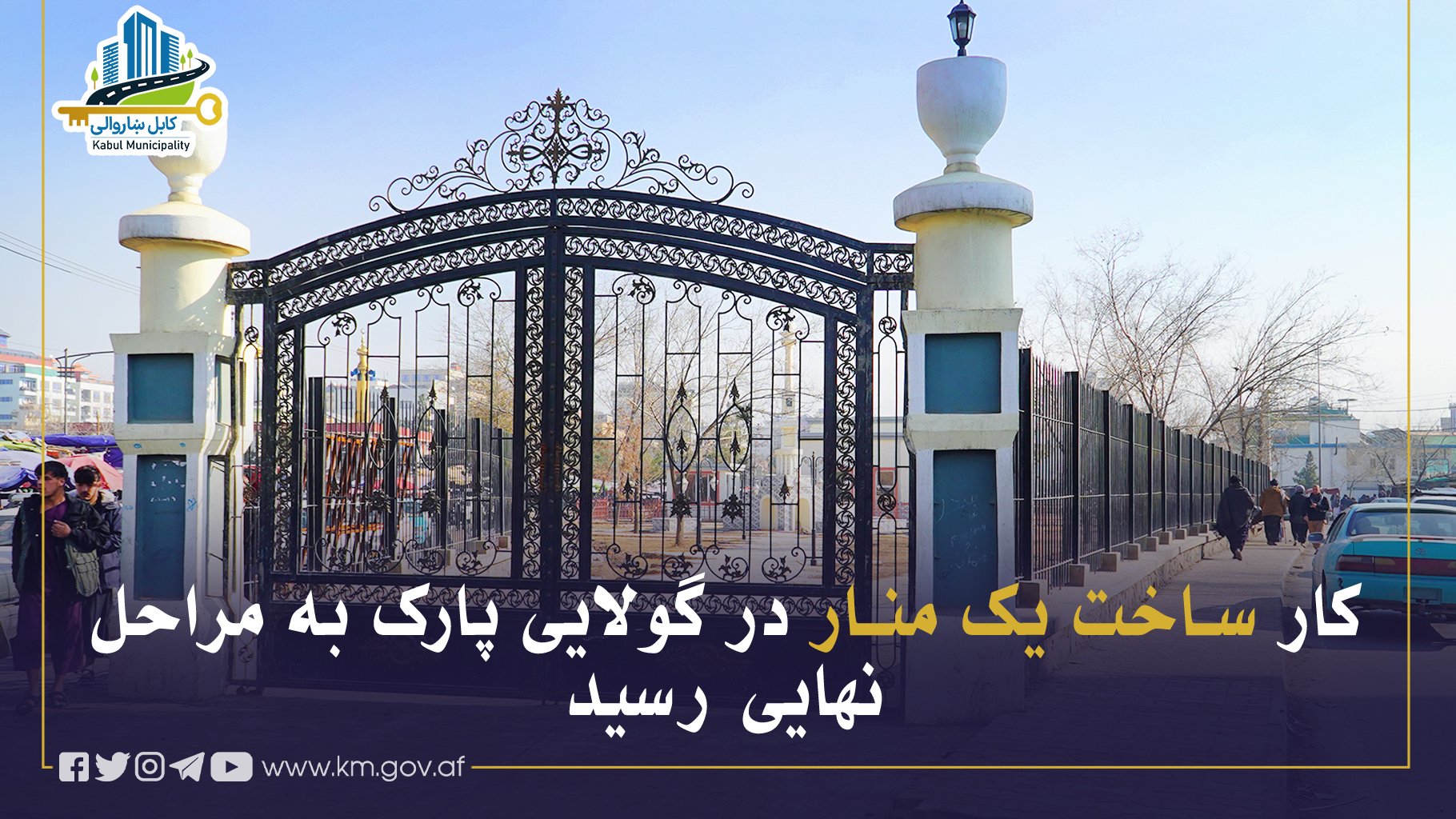 کار ساخت یک منار یادبود و ایجاد ساحهٔ سبز در گولایی پارک، واقع ناحیهٔ یازدهم که چندی قبل از سوی ریاست امور کلتوری شاروالی کابل و با همکاری ریاست انسجام و هماهنگی تطهیر ماین آغاز گردیده بود، اکنون به مراحل نهایی خود نزدیک شده است.
