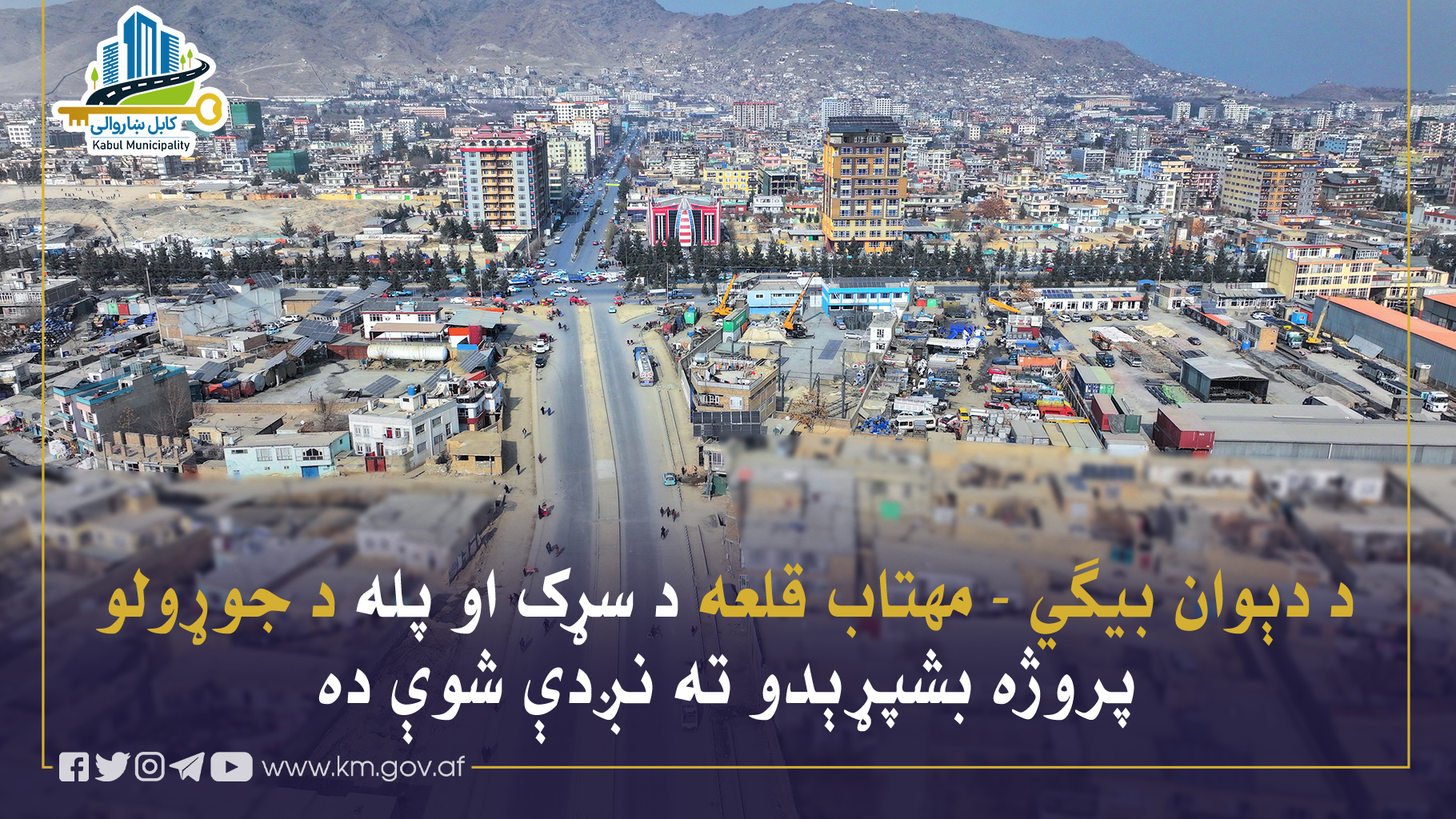 د پنځمې، شپږمې او دیارلسمې ناحیې اړوند د دېوان بیګي او مهتاب قلعه ترمنځ د سړک او پله د جوړولو پروژه چې، د روان کال په بهیر کې د کابل ښاروالۍ د کا، ساتنې او مراقبت ریاست له خوا پیل شوې وه، اوس مهال د بشپړېدو په حال کې ده.