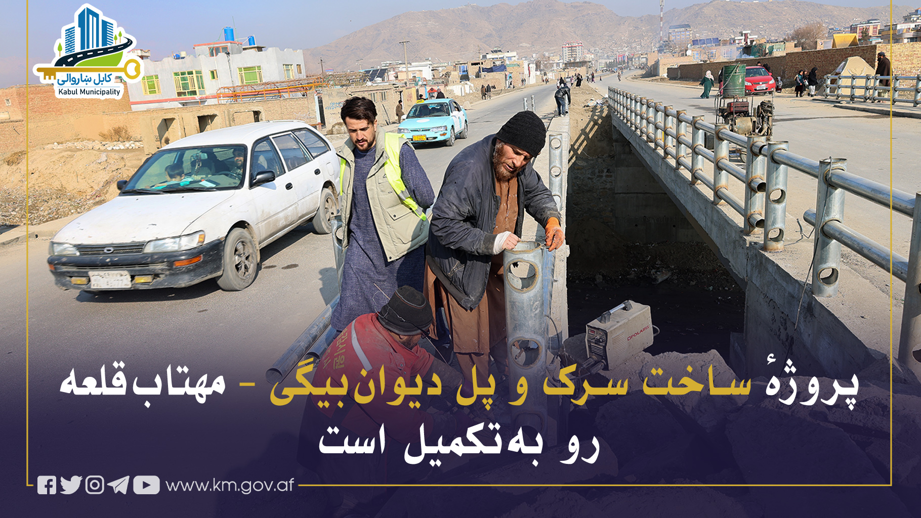 پروژهٔ ساخت سرک و پل میان ساحات دیوانبیگی و مهتابقلعه در مربوطات نواحی پنجم، ششم و سیزدهم که در سال روان از سوی ریاست کار، حفظ و مراقبت شاروالی کابل آغاز شده بود، اکنون بهمراحل پایانی نزدیک شده است.