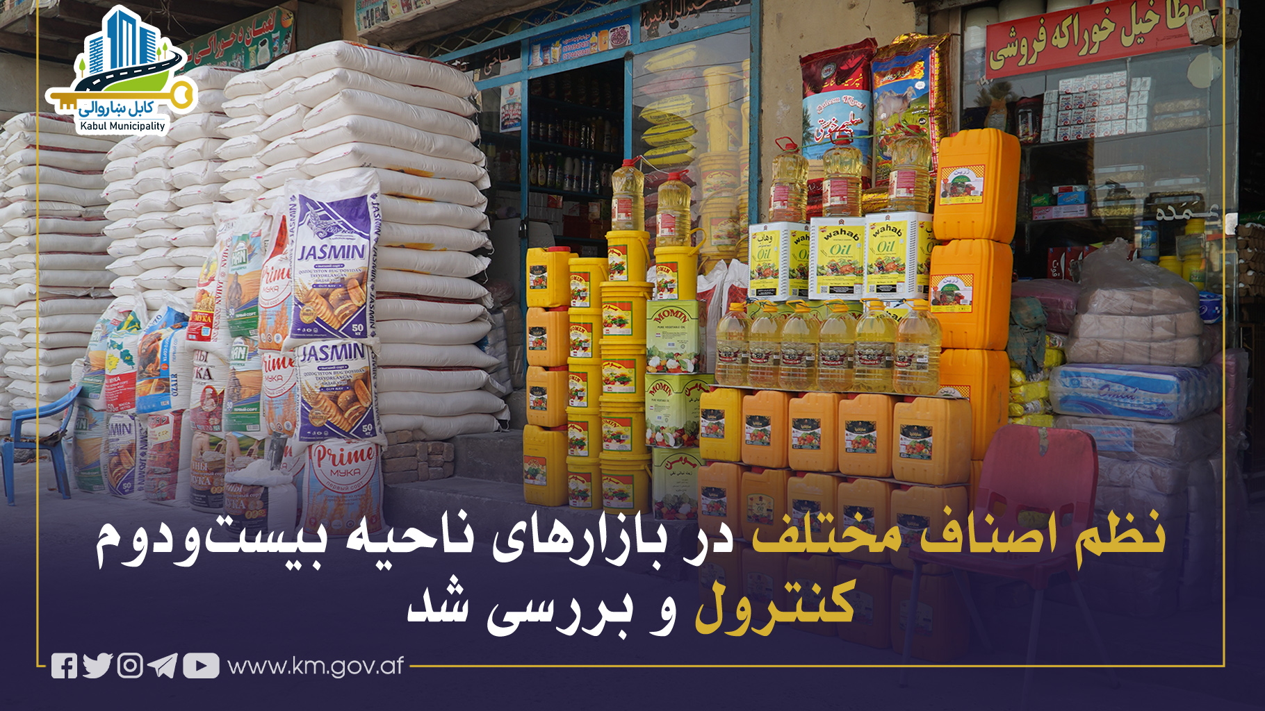 انجنیر محمد داود، رئیس ناحیه بیستودوم، گفت که در جریان این کنترول و بررسی تطبیق نرخنامه، تاریخ و کیفیت مواد خوراکی و بهداشتی در دوکانها، داشتن جواز صنفی، رعایت حفظالصحه محیطی و موجودیت کارت صحت کارکنان خبازیها و قصابیها مورد ارزیابی قرار گرفته است.