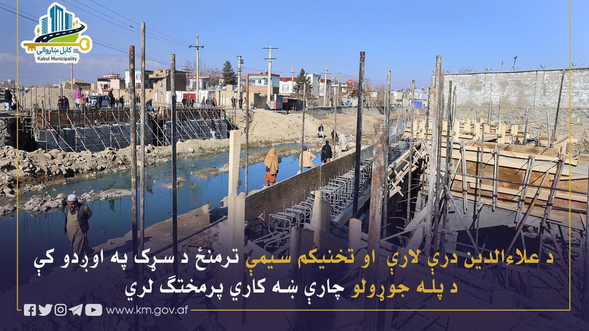 څه موده وړاندې د کابل ښاروالۍ د کار ساتنې او مراقبت ریاست له لوري د علاءالدین درې لارې او تخنیکم سیمې ترمنځ د نوي نښلوونکي سړک په اوږدو کې د کابل سیند د پاسه د موټرو د تګ راتګ یوه پله د جوړولو چارې پیل شوې چې، اوس مهال ښه کاري پرمختګ لري او د لاندنیو برخو تر کانکرېټ کولو وروسته به یې د ګاډرونو د نصبولو په اړه اقدام وشي.