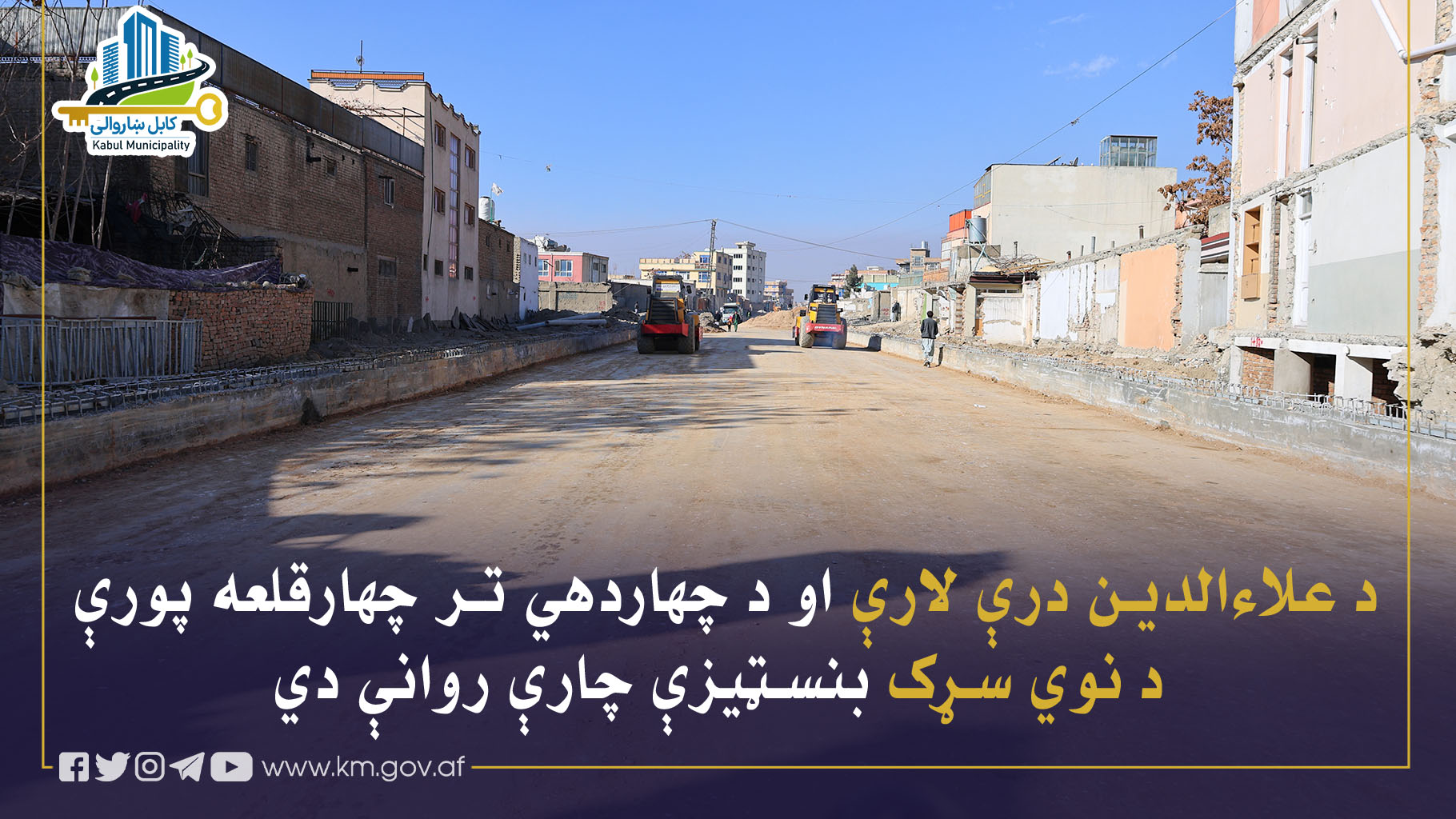 د شپږمې ناحیې اړوند له علاءالدین درې لارې څخه د چهاردهي تر چهارقلعه سیمې پورې د ۱۹۰۲ مترو په اوږدوالي او ۲۰ مترو په سور سره د نوي نښلوونکي سړک بنسټيزې چارې روانې دي.