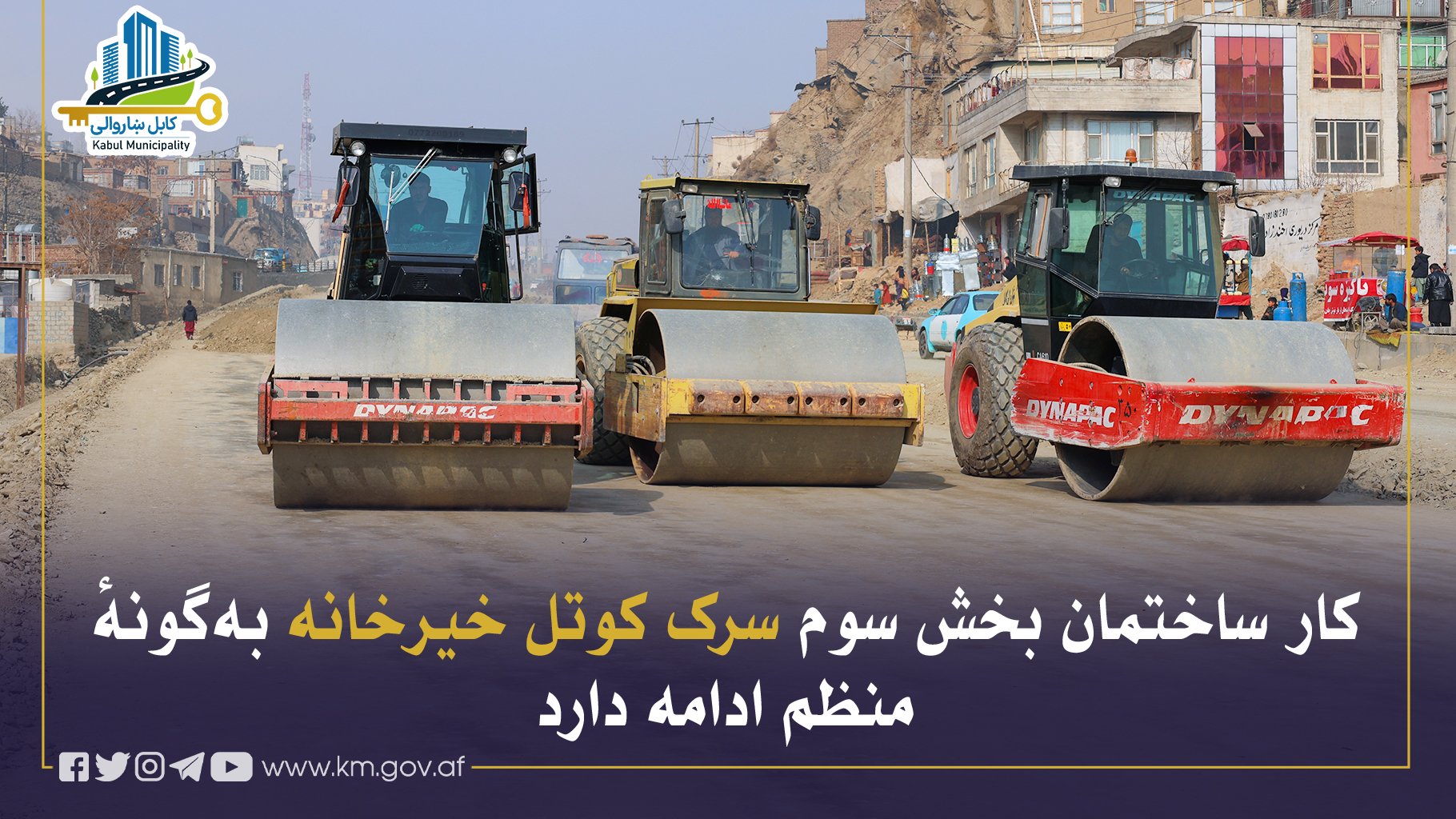 کار ساختمان بخش سوم سرک کوتل خیرخانه بهگونهٔ منظم جریان دارد تا این مسیر در کوتاهترین زمان ممکن و با کیفیت بهتر تکمیل گردیده و مشکلات ناشی از ازدحام ترافیکی در این مسیر برطرف شود.