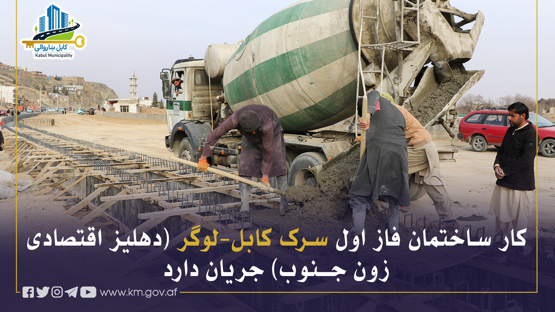 کار ساختمان فاز اول سرک کابل–لوگر (دهلیز اقتصادی زون جنوب) شهر کابل از ساحهٔ منار نجات الی چرخآب، به طول ۷ کیلومتر و با عرض ۶۰ متر با جدیت در حال اجرا است تا بخشهای باقیماندهٔ این مسیر مهم ترانزیتی برای قیرریزی در بهار سال آینده آماده گردد.