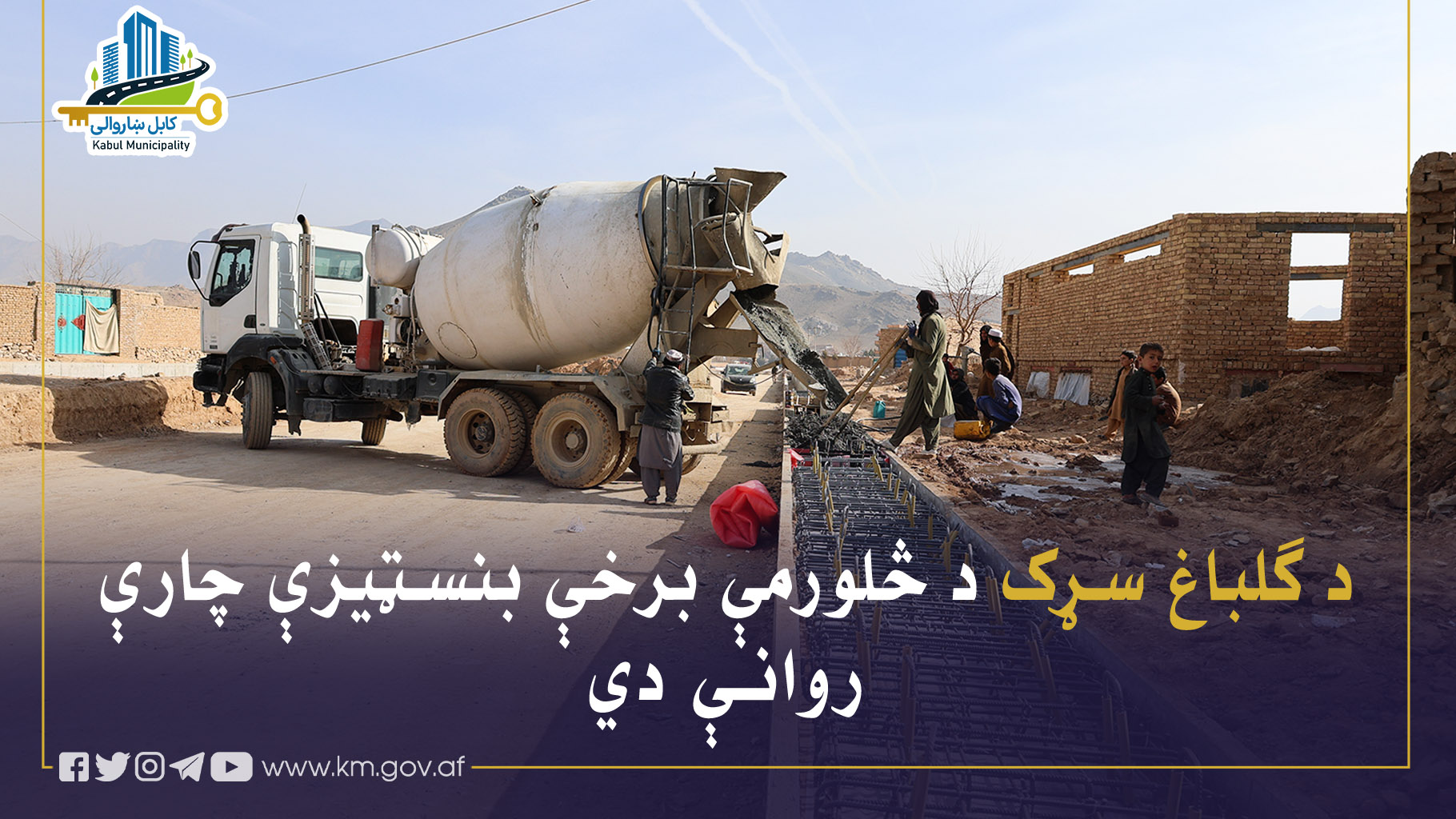 د شلمې ناحیې اړوند د چهل دختران له سیمې څخه د کابل- لوګر تر سړک پورې د ۲۴۲۲ مترو په اوږدوالي او د ۳۳ مترو په سور سره د ګلباغ سړک د څلورمې برخې بنسټیزې چارې روانې دي.