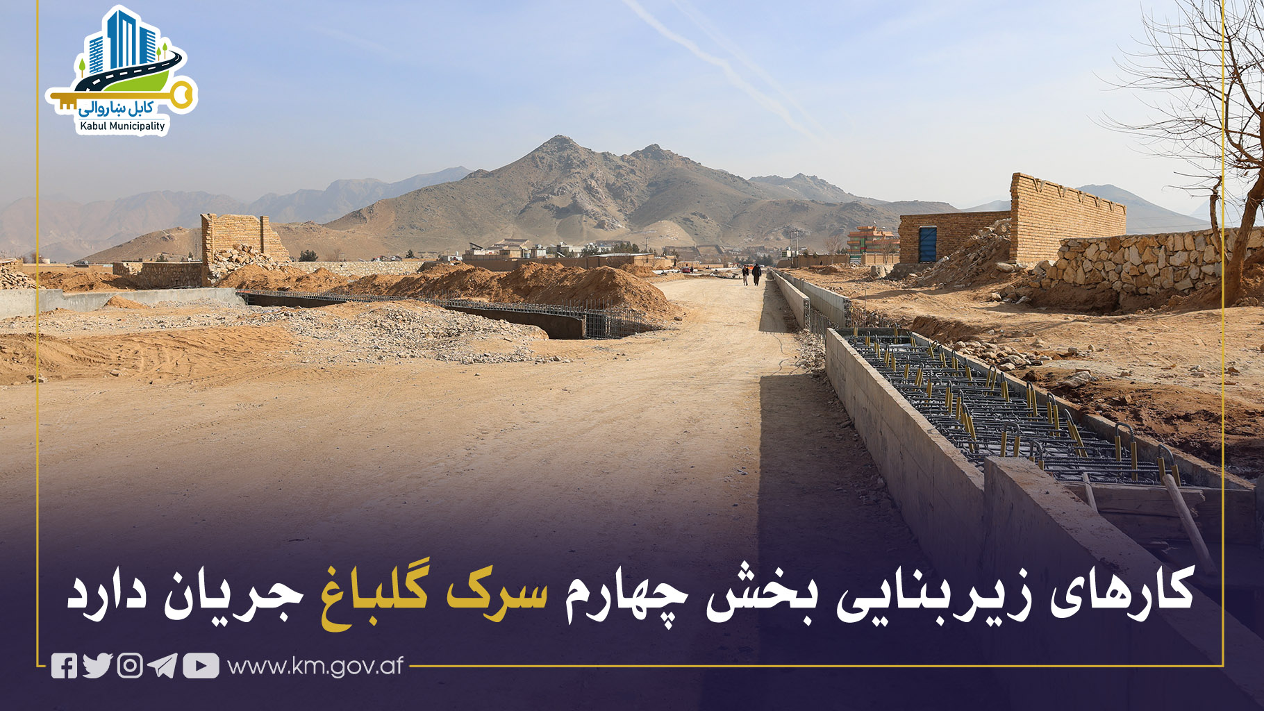 کارهای زیربنایی بخش چهارم سرک گلباغ از ساحهٔ چهلدختران الی سرک کابل–لوگر، بهطول ۲٬۴۲۲ متر و عرض ۳۳ متر، در مربوطات ناحیهٔ بیستم جریان دارد.