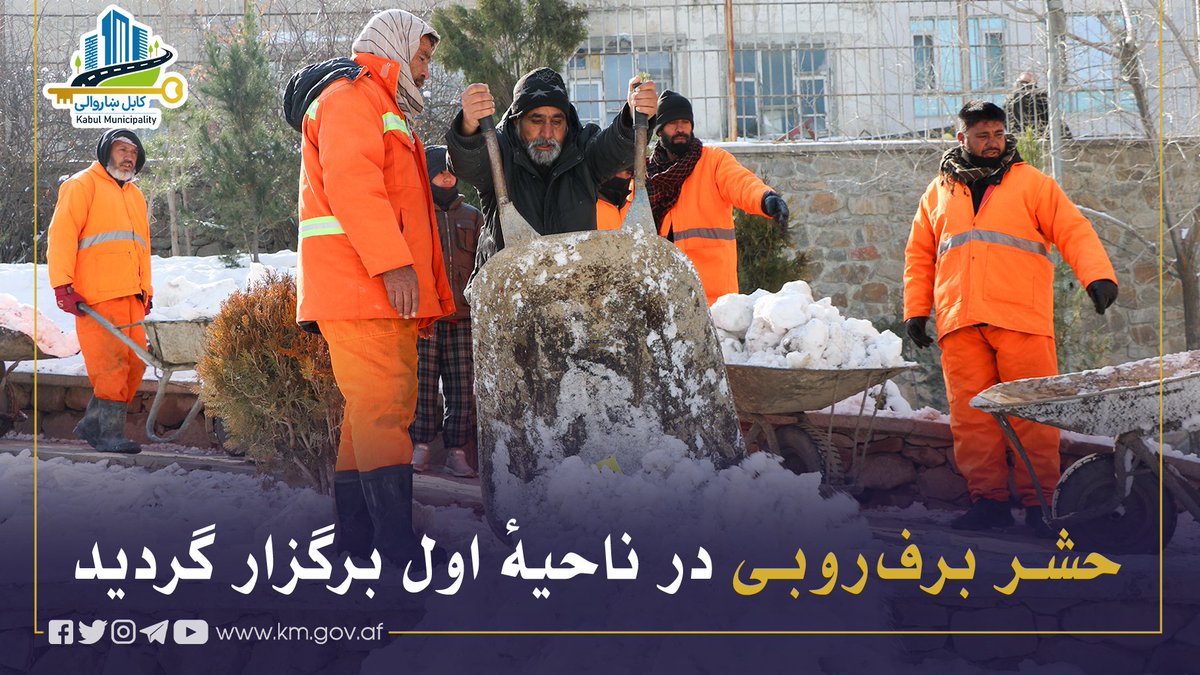 بهمنظور جلوگیری از تخریب تأسیسات شهری و ذخیرهسازی برف در ساحات قابل جذب، حشر برفروبی در ناحیهٔ اول با اشتراک مسئولان شاروالی کابل و شماری از شهروندان این ناحیه برگزار گردید.