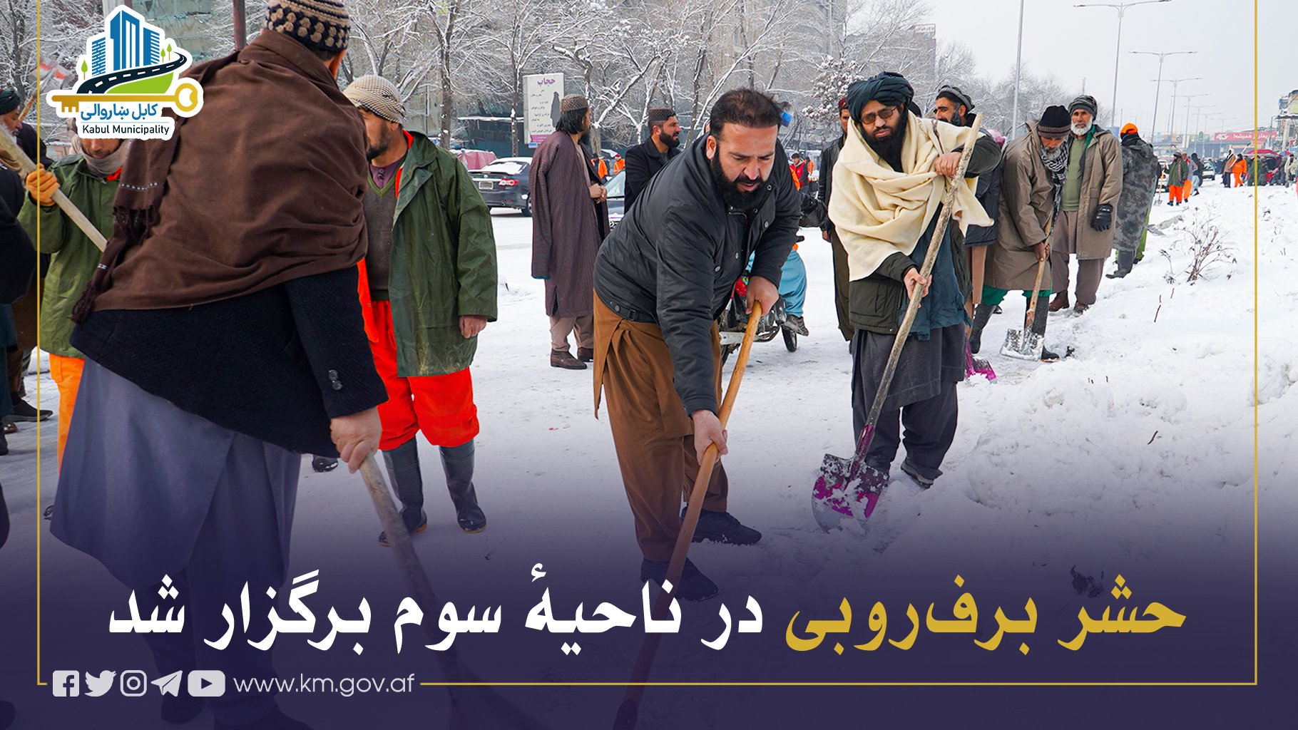 بهمنظور جلوگیری از یخبستن سرکها و ذخیرهسازی برف در ساحات قابل جذب، حشر برفروبی در ناحیهٔ سوم با اشتراک مسئولان شاروالی کابل و شوراهای محلی این ناحیه برگزار گردید.