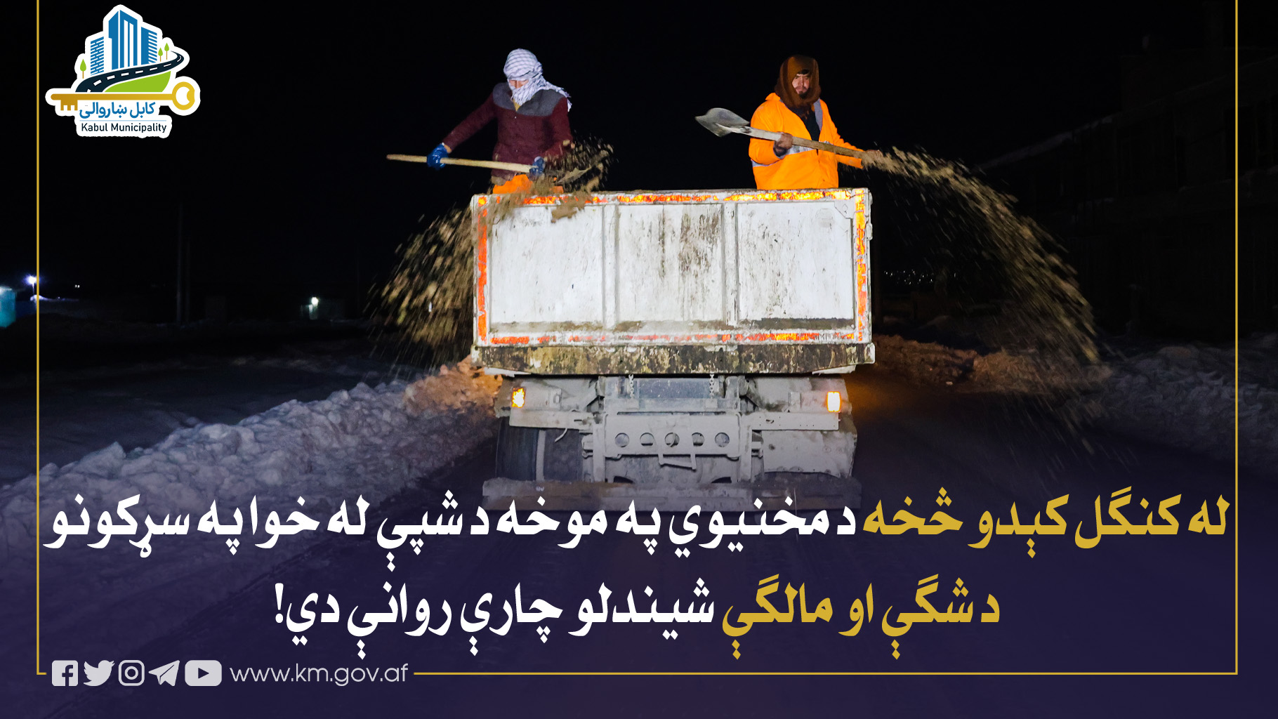 د کابل ښاروالۍ له خوا د یوې منظمې برنامې په ترڅ کې د سړکونو له کنګل کېدو څخه د مخنیوي، د ترافیکي پېښو د کمښت او ښاریانو ته د تګ راتګ په برخه کې د آسانتیاوو رامنځته کېدو په موخه د ښار په یو شمېر سړکونو کې د شپې لخوا د مالګې او شګې شیندلو چارې روانې دي.