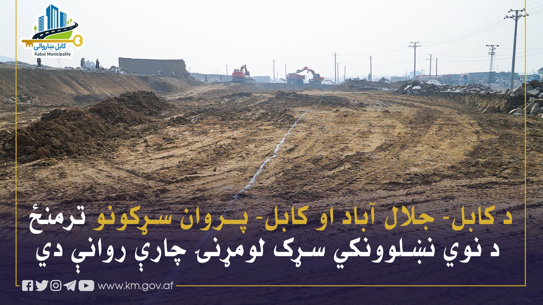 د نهمې، اتلسمې او نولسمې ناحیې اړوند د کابل- جلال آباد له سړک څخه تر صنعتي پارکونو او پر دوام یې د کابل- پروان تر سړک پورې د نوي نښلوونکي سړک د جوړولو لومړنۍ چارې روانې دي.