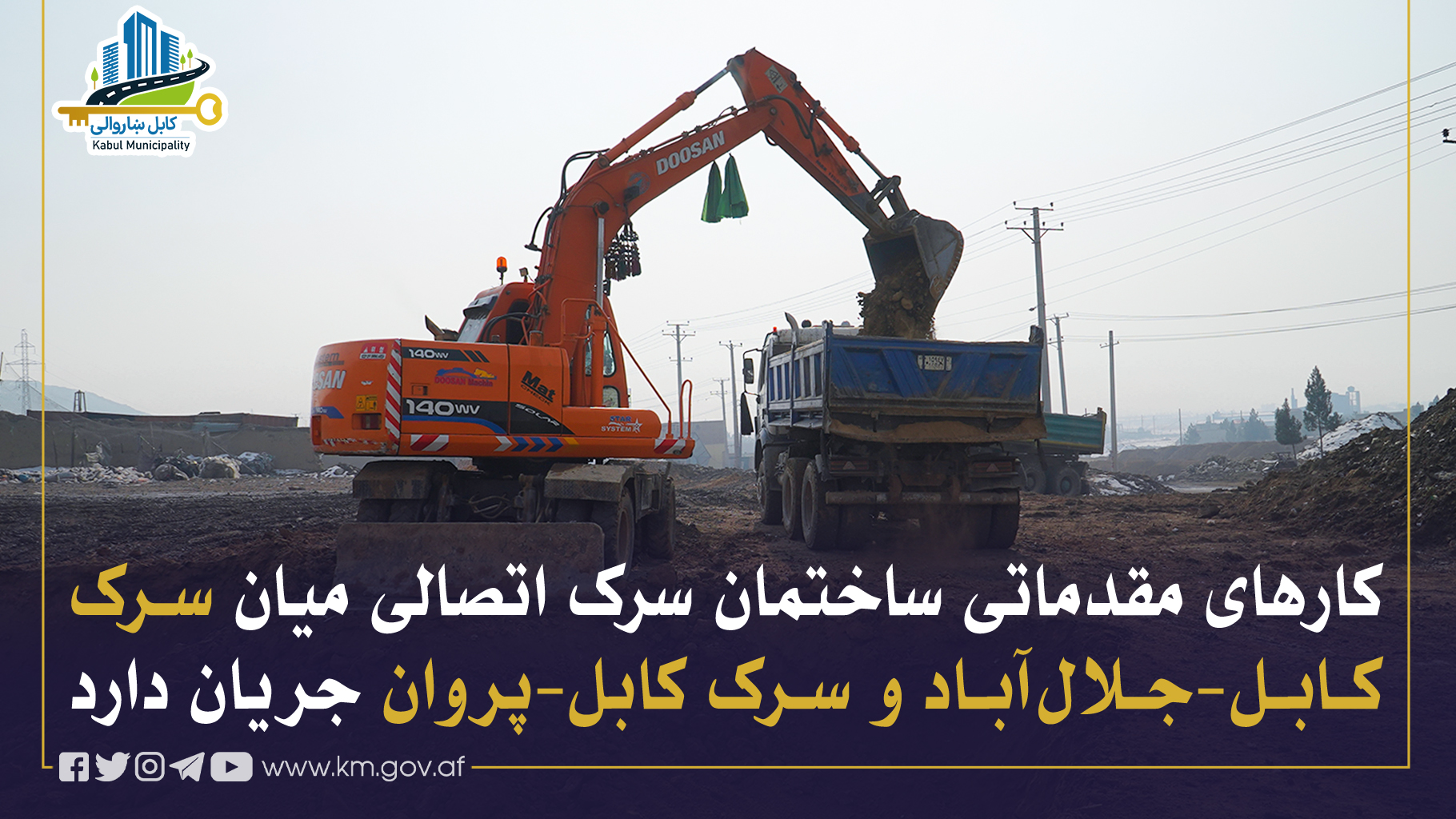 کارهای مقدماتی ساختمان سرک اتصالی از سرک کابل–جلالآباد تا پارکهای صنعتی و در نهایت سرک کابل–پروان، در مربوطات نواحی نهم، هجدهم و نزدهم، از سوی شاروالی کابل جریان دارد.