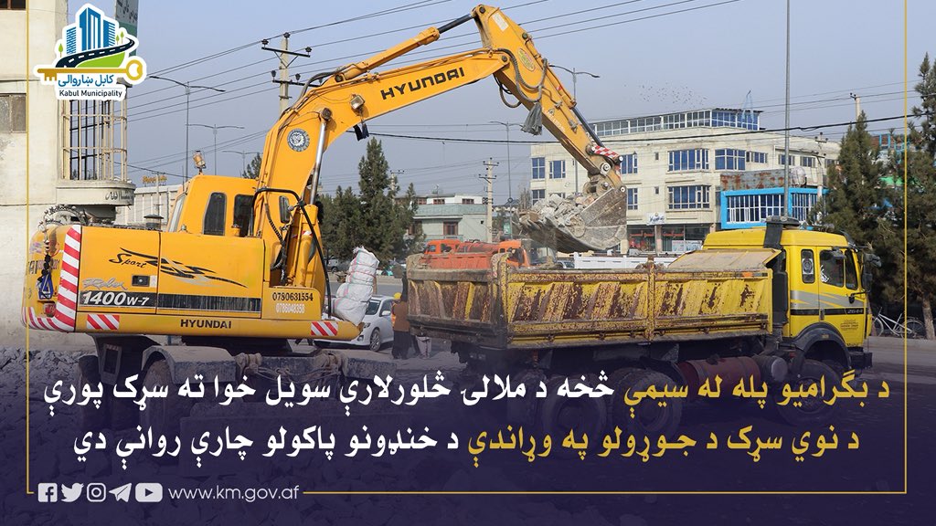 د اتمې او دوه ویشتمې ناحیې اړوند د بګرامیو پله له سیمې څخه د ملالۍ ( بت خاک) څلورلارې سویل خوا ته تر حلقوي سړک پورې د نوي نښلوونکي سړک د جوړولو په وړاندې د خنډونو پاکولو چارې د کابل ښاروالۍ له خوا او د استملاکي ملکیتونو د مالکانو په مرسته روانې دي، څو د سړک اساسي جوړولو ته زمینه برابره شي.