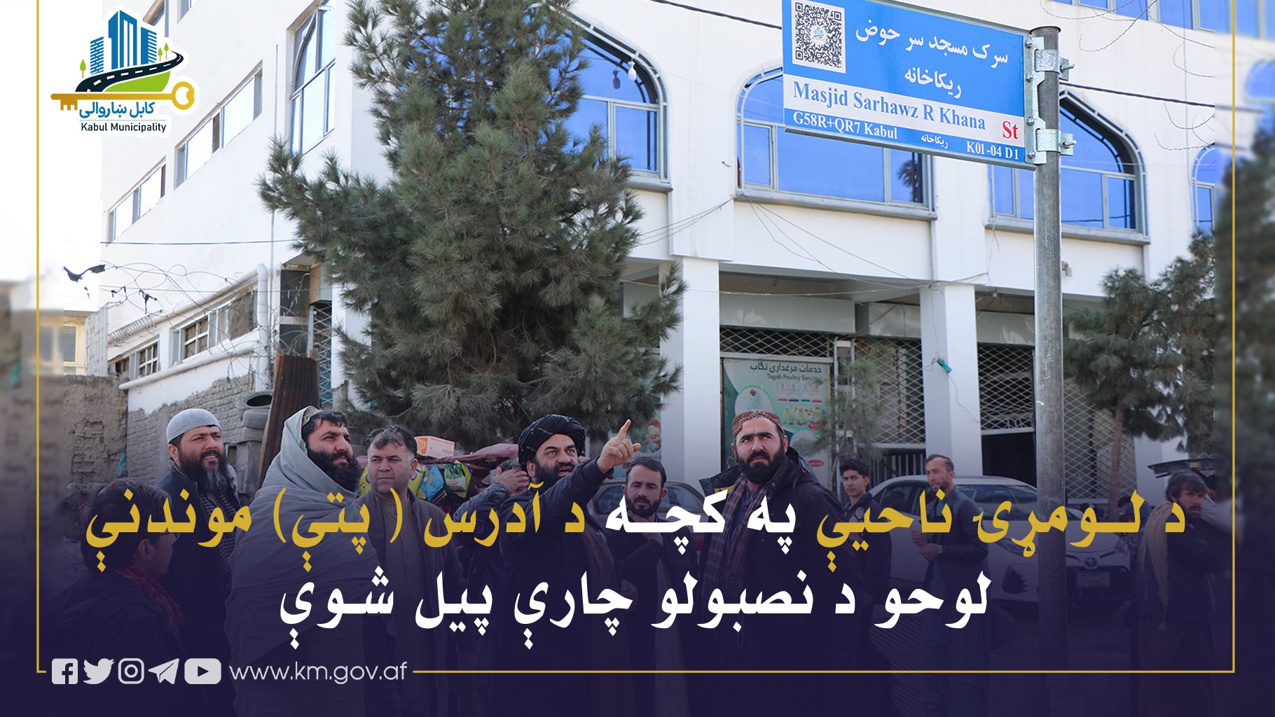 د کابل ښاروالۍ له خوا د لومړۍ ناحیې اړوند کوڅو، سړکونو او عمومي واټونو کې د آدرس( پتې) موندنې لوحو د نصبولو چارې پیل شوې. دا کار د پتې موندنې برنامې په چوکاټ کې ښاریانو ته د آسانتیاوو رامنځته کولو په موخه په دقیقه توګه ترسره کېږي.