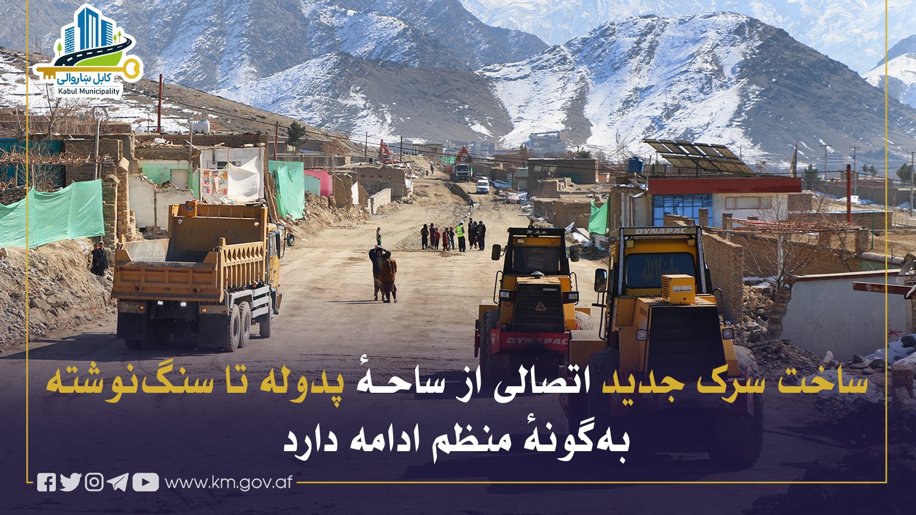 کار ساخت ادامهٔ سرک پدوله، از غرب لیسهٔ خوشحالخان نمبر دو الی پروژهٔ سوم پدوله و تا ساحهٔ سنگنوشته در مسیر سرک کابل–لوگر، بهگونهٔ منظم و مطابق پلان جریان داشته که شامل کندنکاری، خاکبرداری، هموارکاری و پاکسازی موانع میباشد.