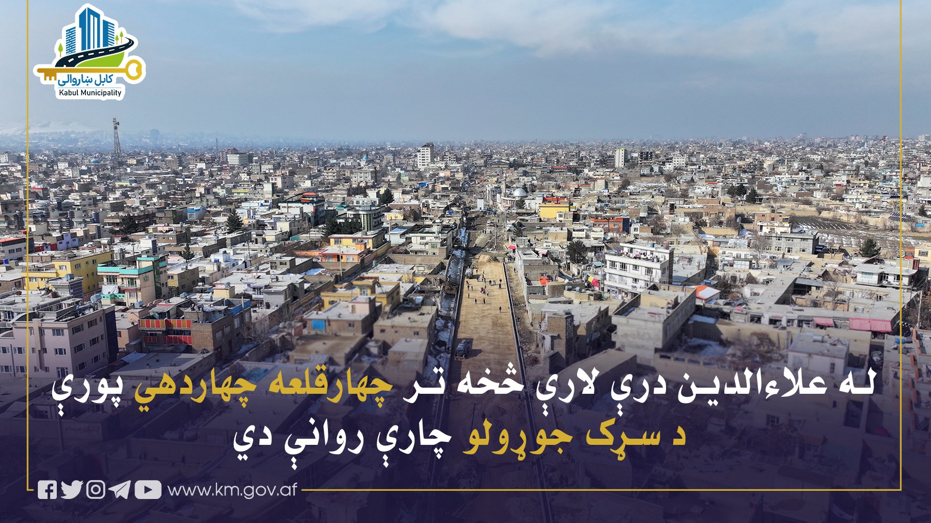د شپږمې ناحیې اړوند له علاءالدین درې لارې څخه د چهاردهي تر چهارقلعه سیمې پورې د ۱۹۰۲ مترو په اوږدوالي او ۲۰ مترو په سور سره د نوي نښلوونکي سړک د جوړولو چارې په منظمه توګه روانې دي.