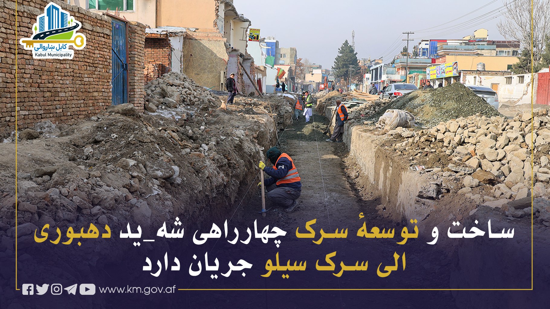 ساخت و توسعهٔ سرک چهارراهی شه_ید دهبوری الی سرک سیلو جریان دارد