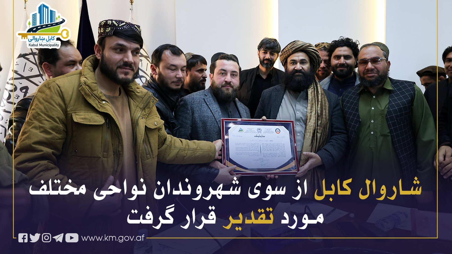 شاروال کابل تأکید کرد که تشویق و قدردانی شهروندان، روحیهٔ خدمتگذاری صادقانه را تقویت میبخشد و شاروالی کابل تلاش مینماید تا بیش از پیش به مشکلات و نیازهای شهروندان کابل رسیدگی صورت گیرد.