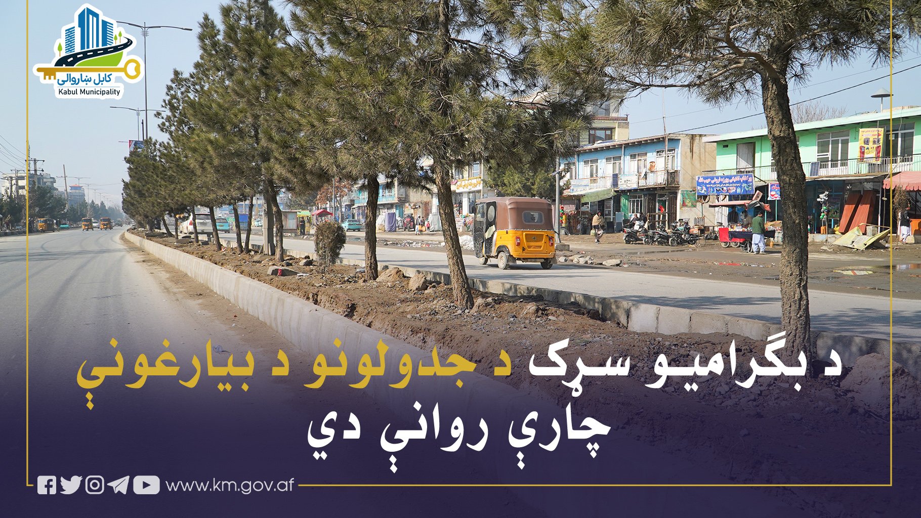 د کابل ښاروالۍ د کار، ساتنې او مراقبت ریاست له خوا د بت خاک ( ملالۍ) تر څلورلارې پورې د بګرامیو سړک د جدولونو د بیارغولو چارې روانې دي او ټاکل شوې ده ډېر ژر بشپړې او وروسته رنګ شي.