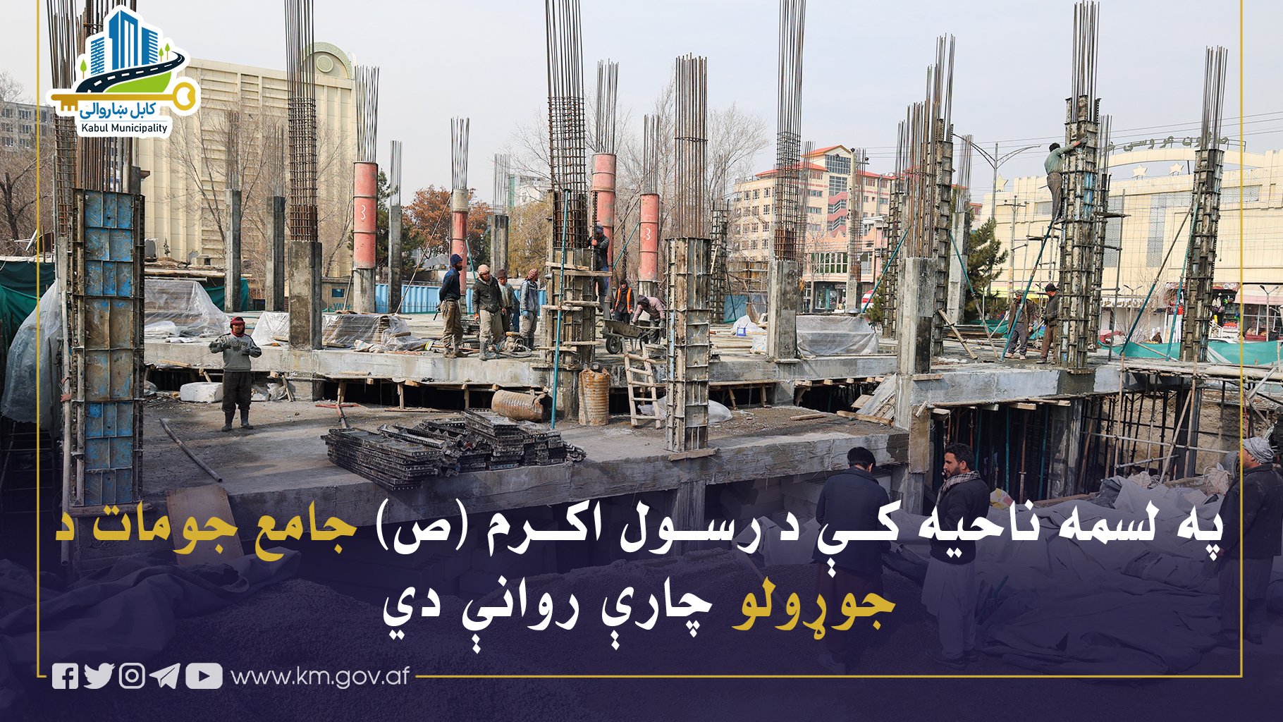 د کابل ښاروالۍ د کار، ساتنې او مراقبت ریاست له خوا د لسمې ناحیې اړوند د قلعه فتح الله سړک په اوږدو کې د رسول اکرم (ص) د جامع جومات د جوړولو چارې روانې دي.