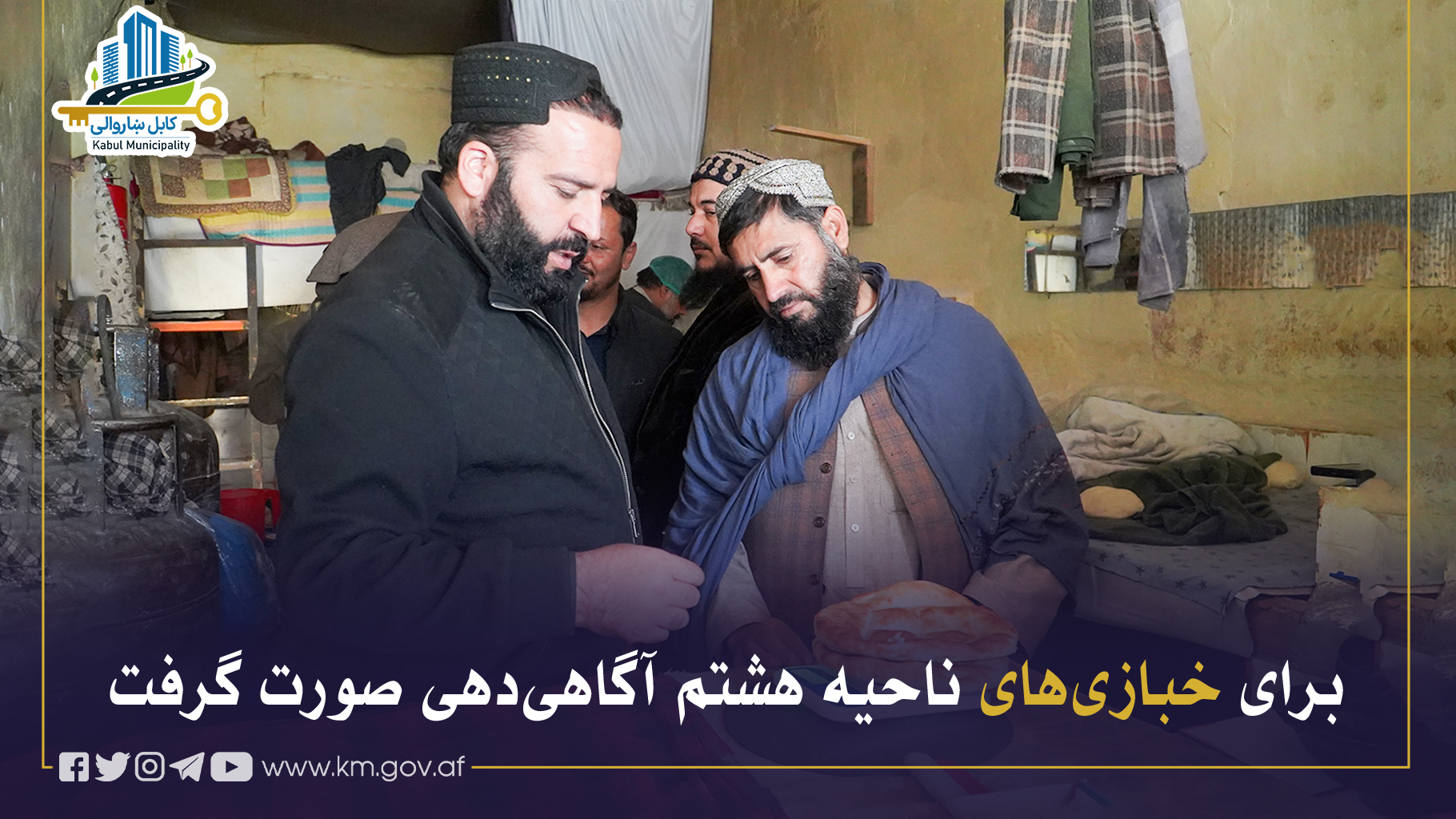 بهمنظور حفظالصحهٔ محیطی و تأمین سلامت شهروندان، برنامهٔ آگاهیدهی برای خبازیهای ناحیهٔ هشتم از سوی ریاست نشرات و آگاهی عامهٔ شاروالی کابل، با همکاری ناحیهٔ مربوطه برگزار گردید.