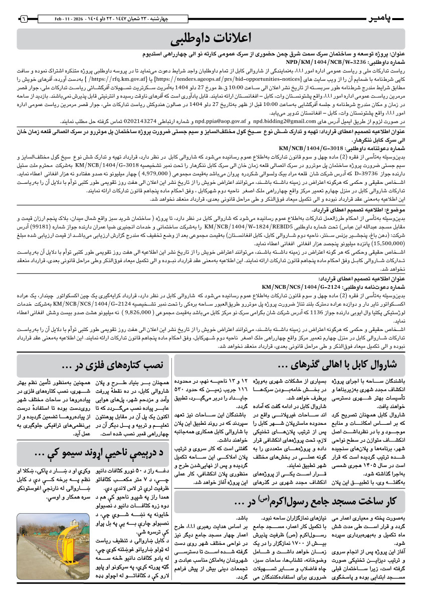 پلانهای شاروالی کابل