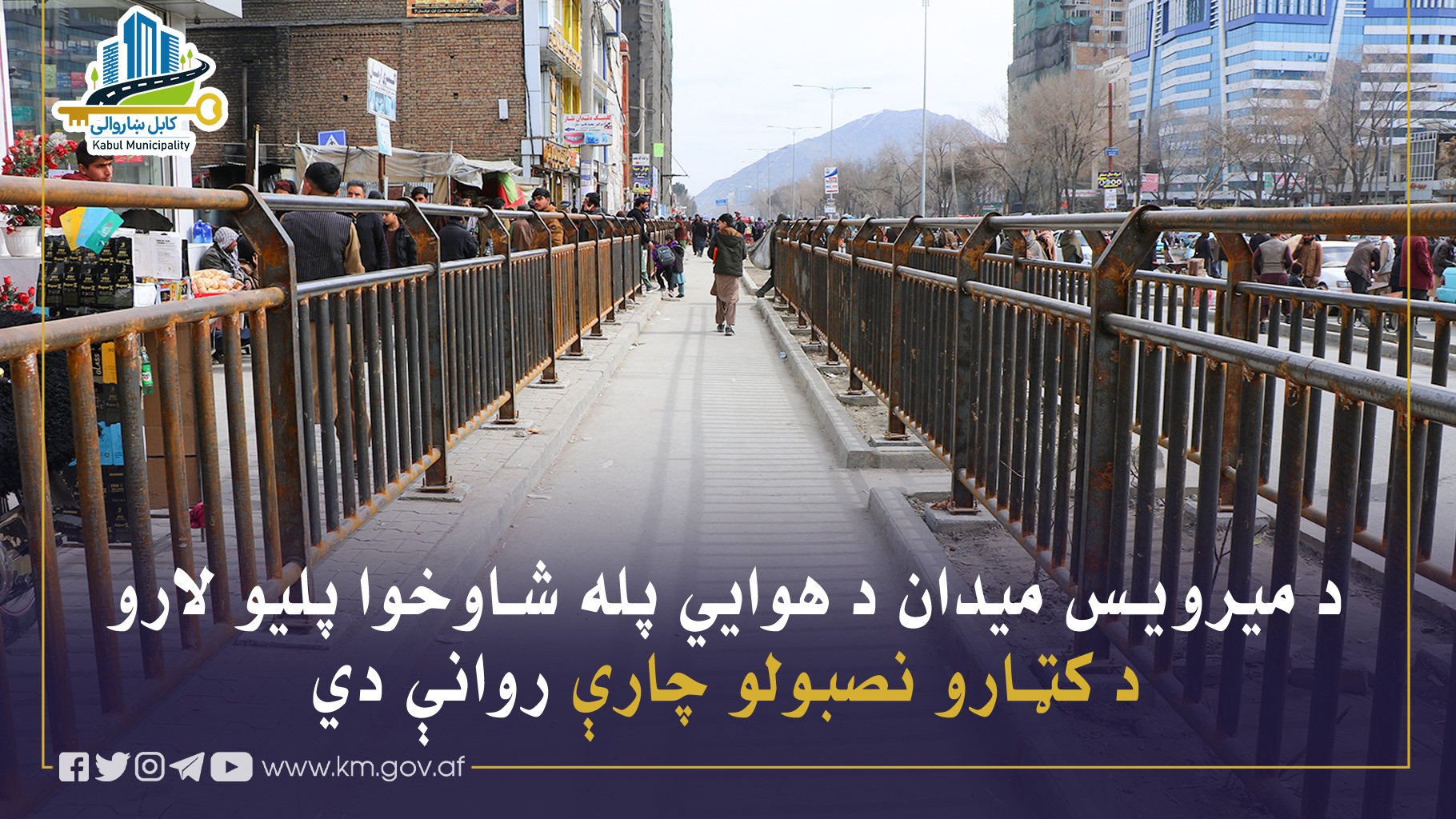 د ښاري نظم د تأمین او د پلي ترافیک د غوره مدیریت په موخه، د کابل ښاروالۍ له خوا د میرویس میدان (کوټهسنگي) هوايي پله شاوخوا پلیو لارو کې د اوسپنیزو کټارو د نصبولو چارې په منظم ډول روانې لري.