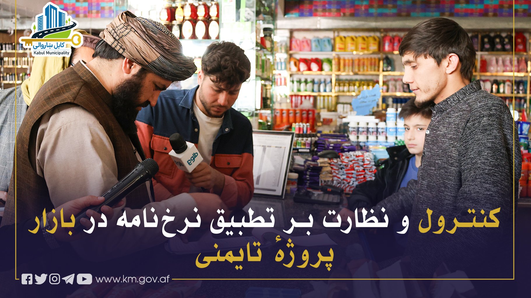 د کابل ښاروالۍ د مارکېټونود تنظیم ریاست له لوري له احتکار څخه د مخنیوي او د نرخونو د کنټرول په موخه د څلورمې ناحیې اړوند د تایمني پروژې په بازار کې د نرخنامې د تطبیق له څرنګوالي څارنه وشوه.