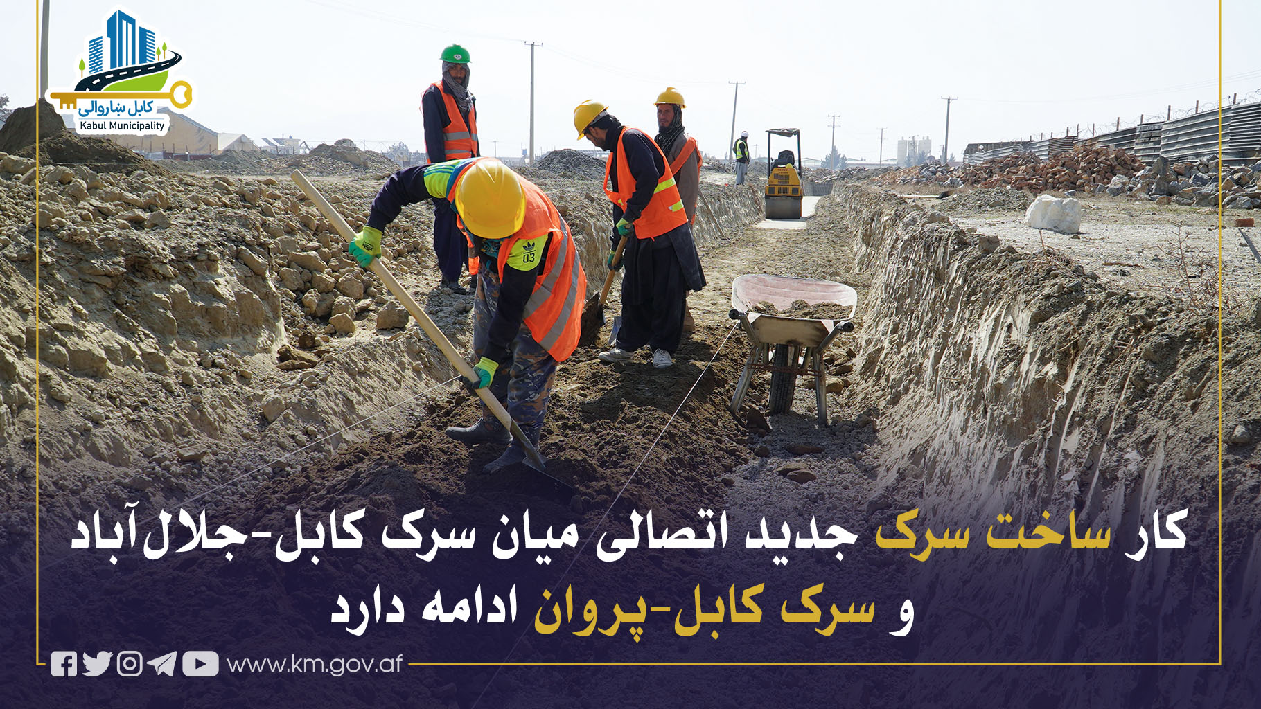 کارهای ساخت سرک جدید اتصالی از مسیر سرک کابل–جلالآباد تا پارکهای صنعتی و الی سرک کابل–پروان، در مربوطات نواحی نهم، هجدهم و نزدهم که چندی قبل از سوی شاروالی کابل آغاز شده بود، با پیشرفت منظم جریان دارد.