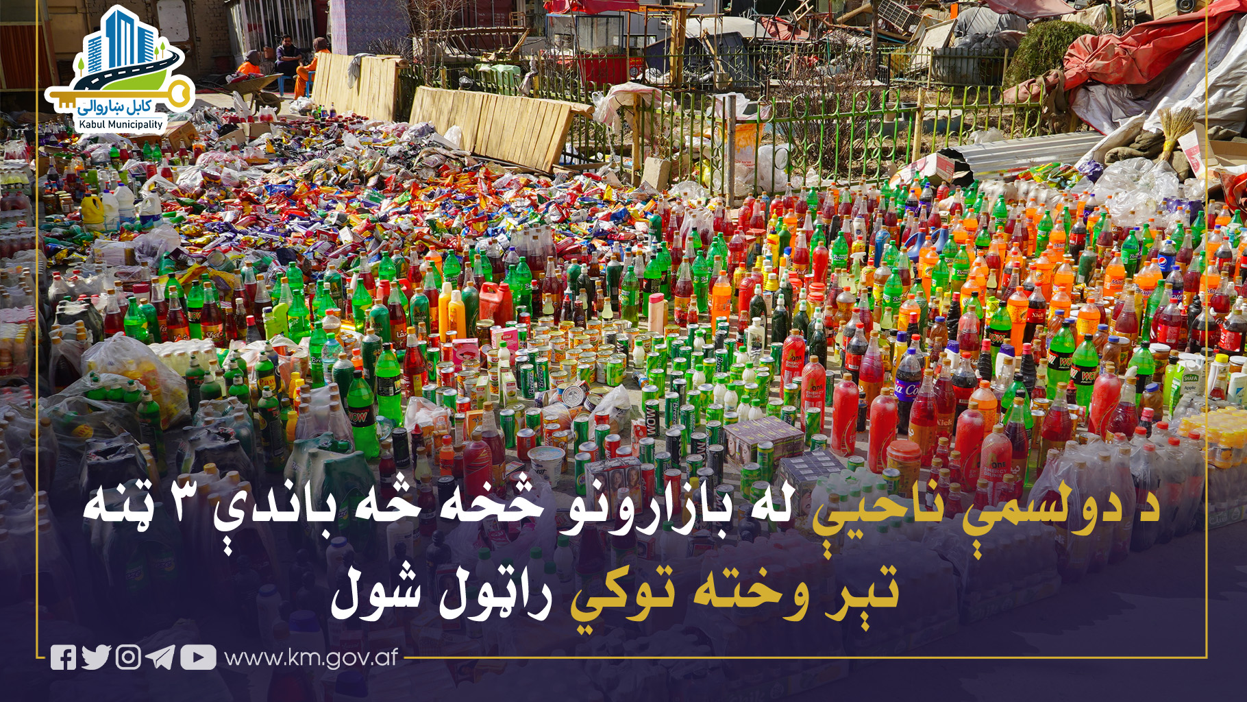 د دولسمې ناحیې د مسئولینو له خوا د یادې ناحیې له بازارونو څخه د څارنو په لړ کې، ۳۰۶۴ کیلو ګرامه تېر وخته او بې کیفیته خوراکي او غیر خوراکي توکي او ۸۱ لوډسپیکرونه چې، د غږیزې ککړتیا لامل ګرځېدلي وو راټول او د له منځه وړلو په موخه ټاکلي ځای ته ولېږدول شول.