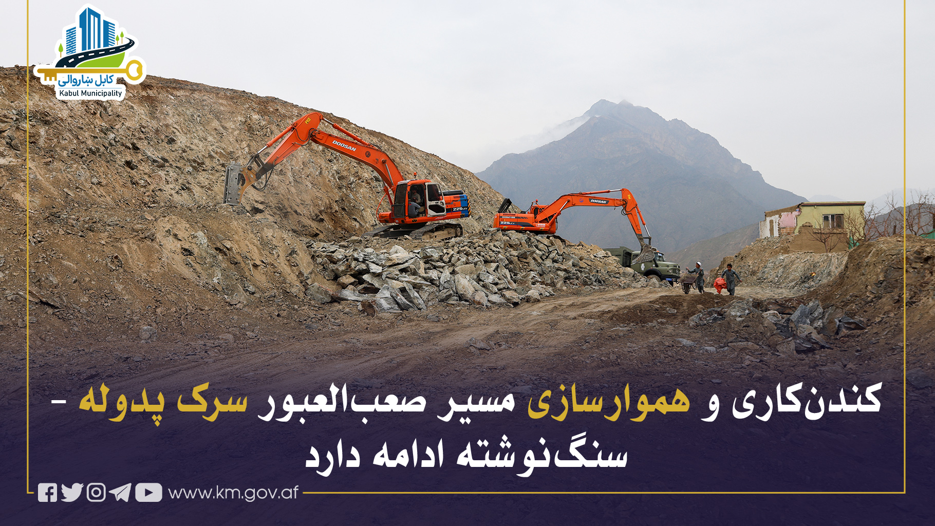 کارهای کندنکاری دامنههای کوه و هموارسازی مسیر صعبالعبور سرک پدوله از غرب لیسهٔ خوشحالخان نمبر دو تا پروژهٔ سوم پدوله و در نهایت تا ساحهٔ سنگنوشته در مربوطات نواحی هفتم و بیستم جریان دارد که این فعالیتها بهمنظور آمادهسازی مسیر برای ساخت طبقات اساسی سرک انجام میشوند.