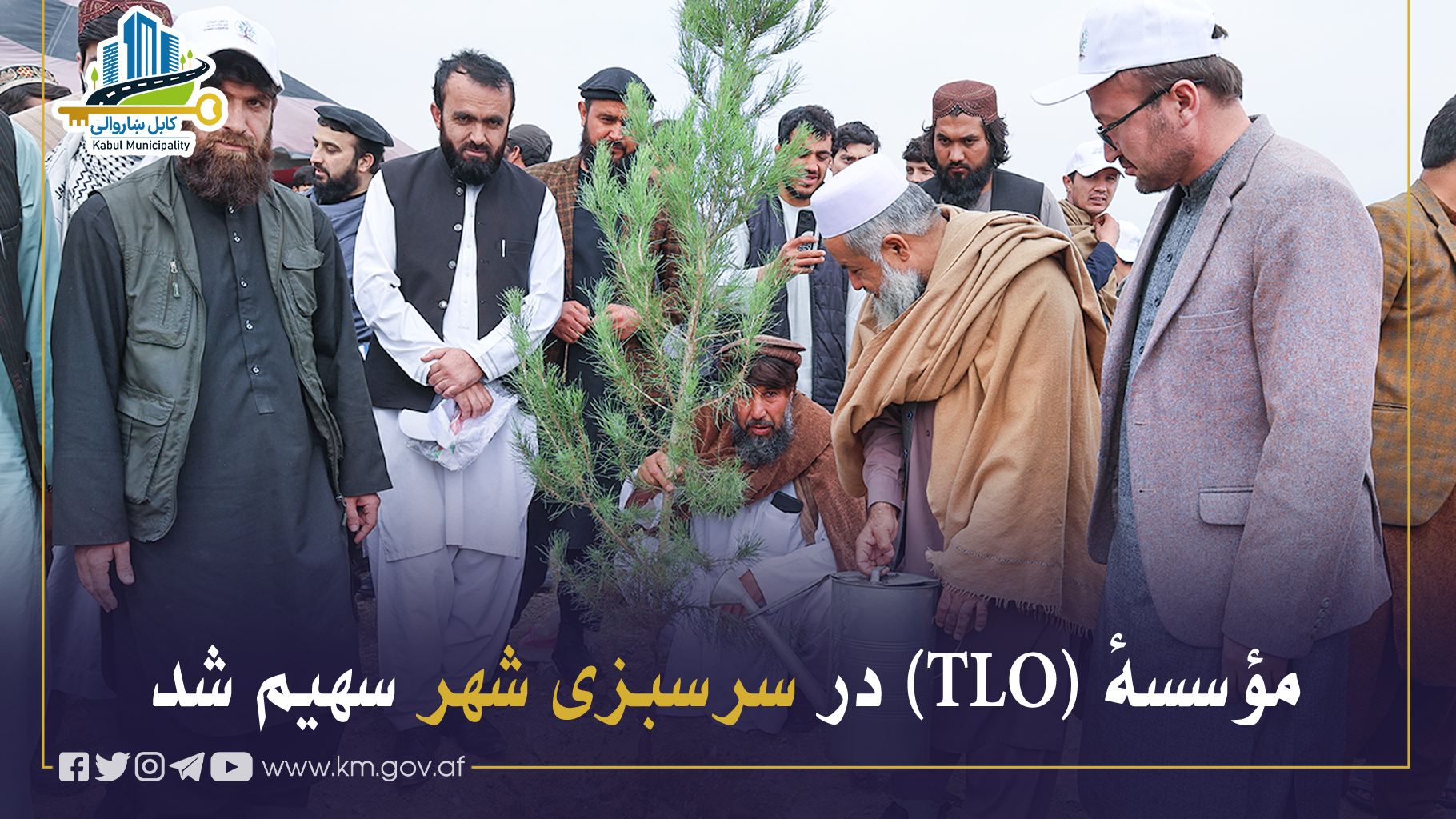 مؤسسهٔ (TLO) با تهیه و غرس ۱۱۰۰ اصله نهال انار، پسته و ناجو در پروژهٔ کمربند سبز ساحهٔ تپهٔ قلعهٔ مسلم، در راستای سرسبزی و زیبایی شهر کابل سهم گرفت.