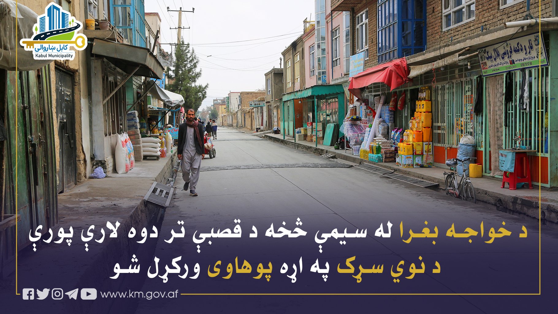د پنځلسمې ناحیې اړوند د خواجه بغرا له سیمې څخه د قصبې تر دوه لارې پورې د نوي سړک د جوړېدو په اړه د یاد سړک په اوږدو کې د استملاکي ملکیتونو مالکانو ته پوهاوی ورکړل شو او له دوی وغوښتل شول چې، د دې پروژې په پلي کېدو کې له کابل ښاروالۍ سره مرسته وکړي.